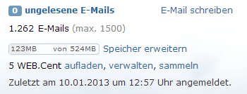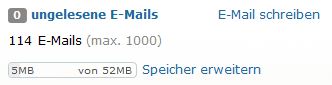 als ich heut' beim täglichen Email-Checken - Emails checkte, stellte ich fest, statt der 12MB Speicherplatzgröße steht da
