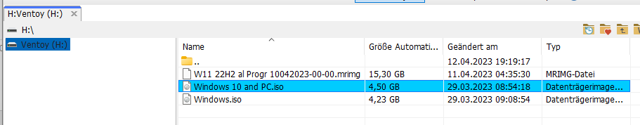Ventoy bringt dann eine Fehlermeldung, daß ein Boostsektor die falsche Länge hat (oder so ähnlich).