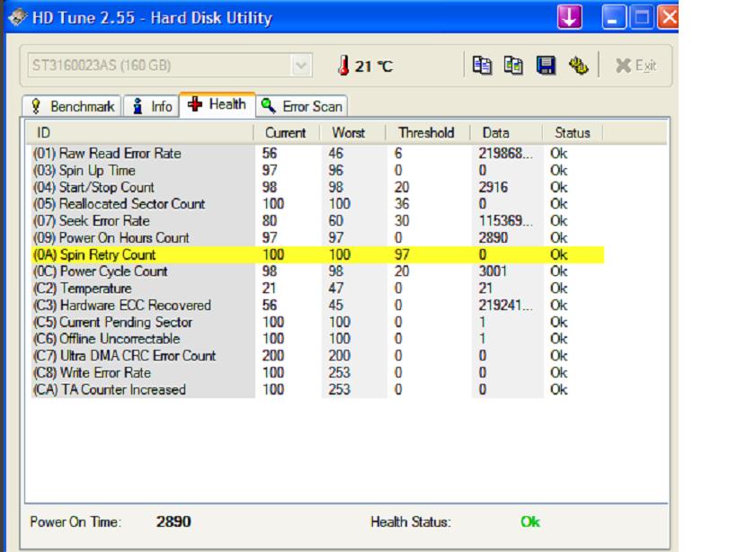 Ich habe HD Tune beim System von meiner Schwester laufen lassen. Als Ergebnis kam dann raus, dass die Festplatte in Orduung sei, mit Ausnhame eines Feldes (siehe Screenshot 1). Ist das schlimm oder kann ich die Festplatte einfach so weiterlaufen lassen? Desweiteren ist die Temperatur bis an die 40 Grad gekommen, da es ein komplett Rechner von Aldi ist und diese ja nicht wirklich viele Lüfter haben.. Ist diese Temperatur schlimm oder brauch ich mir da keinen Kopf machen? Der PC läuft nämlich so schon seit 3 Jahren. Im2. Screenshot ist der Health Status der Festplatte zu sehen. So wie ich das sehe, scheint diese in Ordung zu sein, doch wieso ist der eine Eintrag gelb hinterlegt? Dann meine letzte Frage, aber zu meinem System. Und zwar kann ich die Temperaturen meiner beiden HDs nicht auslesen. Ich habe auch schon ein bisschen gegoogelt und kam zu dem Ergebnis, dass es an meinem Nvidia Chipsatz liegt. Dann meinte einer, man sollte es mit der neuen Beta Version von Everest Ultimate versuchen, nur das Funktionierte beiu mir auch net. Meint ihr, dasss es wirklich nicht geht? Ich habe auch schon ausprobiert: HD Tune, Hardware Monitor, Speedfan, Everest (mehrere Versionen).
