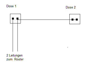 Ich möchte aber jetzt eine zweite Netzwerkdose verbauen. Allerdings sollen beide Anschlüsse der zweiten Dose über eine Leitung der ersten Dose angeschlossen werden.