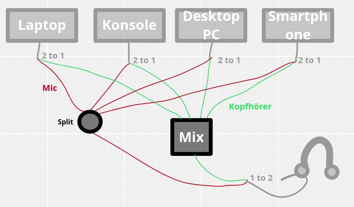 ich bin schon etwas länger auf der Suche nach einer Lösung für meinen Schreibtisch. Ich würde gerne mein Headset (kabelgebunden) mit mehreren Endgeräten verbinden (Laptop, Desktop PC, Konsole, Smartphone) ohne jedes mal das Kabel umstecken zu müssen. Habe mir dazu mehrere Möglichkeiten überlegt, aber ich weiß nicht genau, was davon am Ende tatsächlich funktionieren würde.