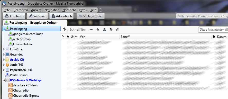 Wie kann man unter Thunderbird 8.0 mehrere EMail-Adressen zusammenfassen, also es so einstellen, dass alle Mails in einem Ordner zusammenlaufen ?