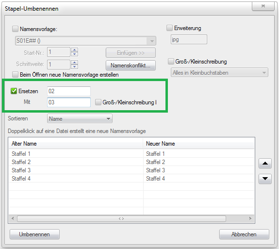 ordner markieren, f2, und bestimmte zeichen etc mit anderen zeichen ersetzen