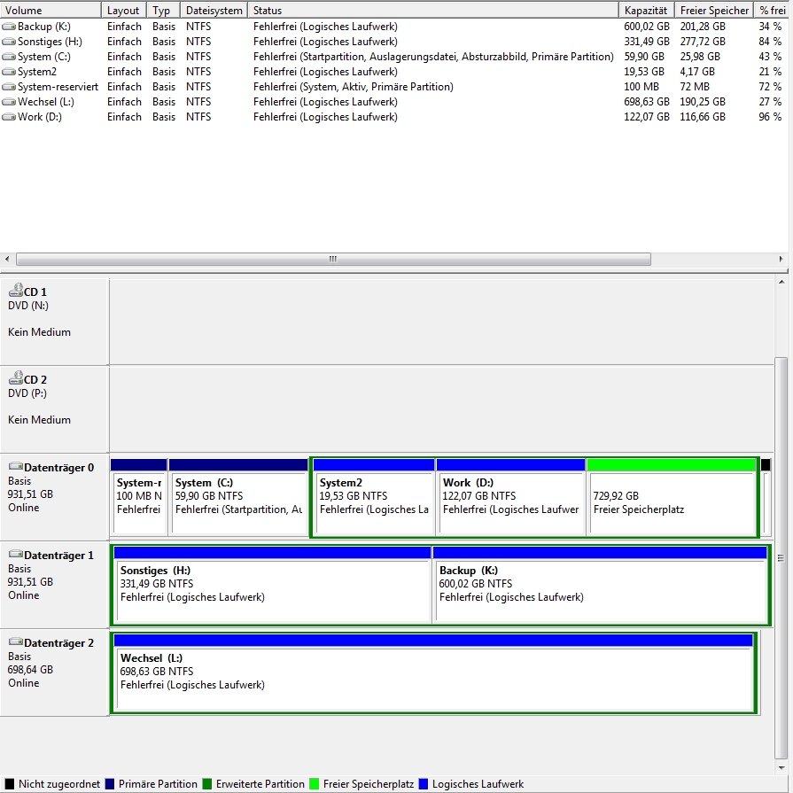 ich hoffe man kann mir einige Tipps / Hinweise geben, um meine "verschwundenen" Partitionen, die jetzt als "freier Speicherplatz" in der Datenträgerverwaltung angezeigt werden, wieder herzustellen.