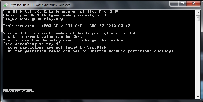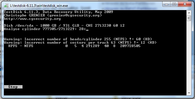 Anbei noch ein Screenshot von TestDisk während der Analyse.