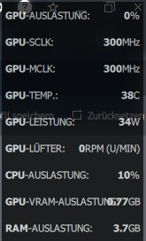 2. Die Grafikkarte ist undervolted und der maximale Takt von mir auf 1210 MHz beschränkt. Unter Volllaust braucht die Karte so ca. 80W, was ich sehr angenehm finde. Allerdings ist der Idle-Verbrauch (ein 4K-Monitor, 0% Auslastung, 300 MHz Core/Memory) mit ca. 33-38W und einer Temperatur von 37-39 Grad unangemessen hoch. Laut einem Test von Golem.de sollte eine RX 570 in diesem Szenario eigentlich nur ca. 14 Watt verbrauchen und nicht mehr als das doppelte hiervon. Beim Anschauen eines Videos auf YouTube steigt der Verbrauch auf ca. 42 Watt an, wobei hier laut der Tabelle eigentlich 21 Watt ein normaler Verbrauch wäre. Am Verbrauch ändert sich nichts, wenn man den Monitor anstelle des DisplayPort-Kabels stattdessen mit einem HDMI-Kabel verbindet.