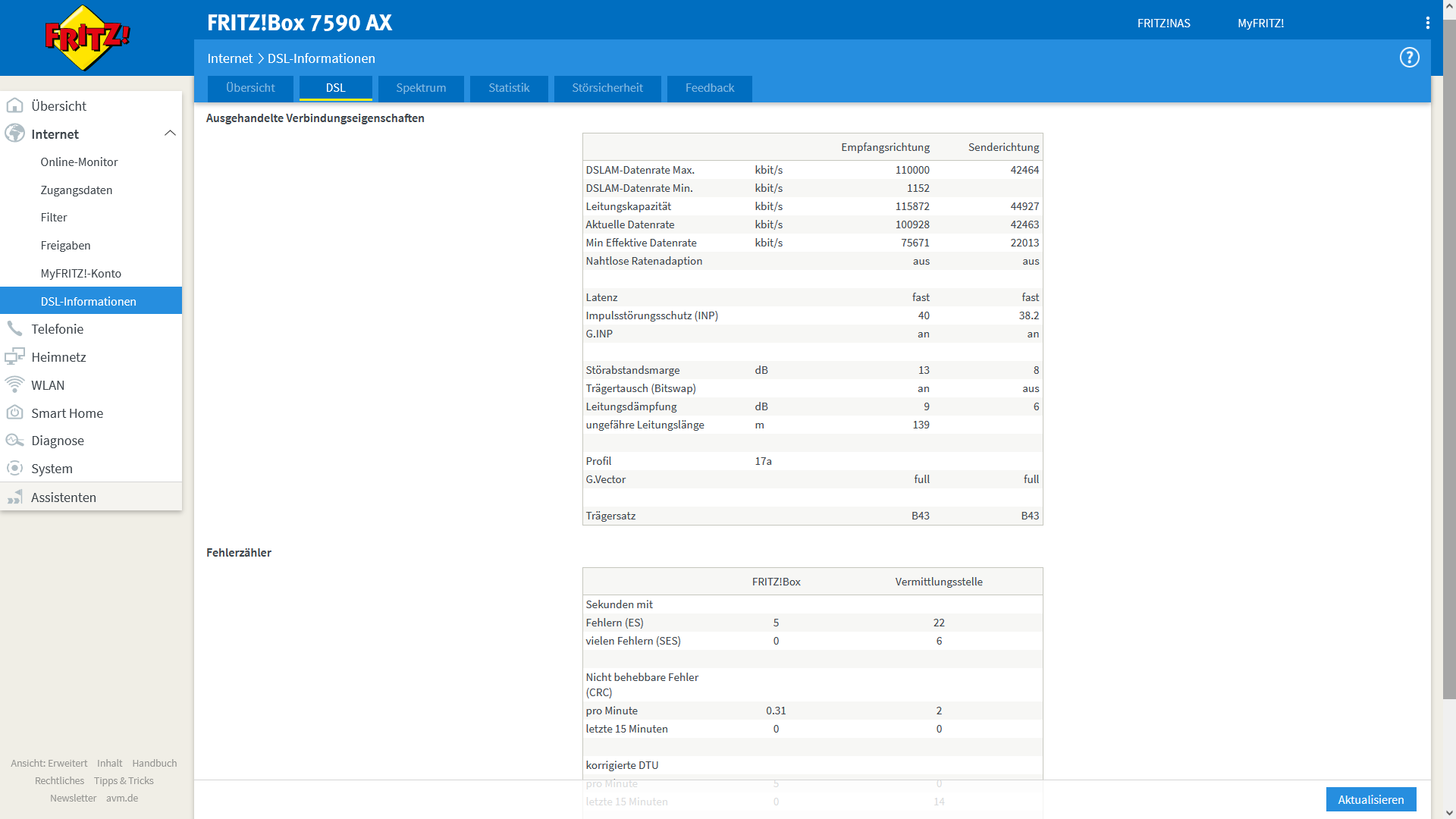 15.09.21 03:18:45 DSL ist verfügbar (DSL-Synchronisierung besteht mit 104396/43680 kbit/s).