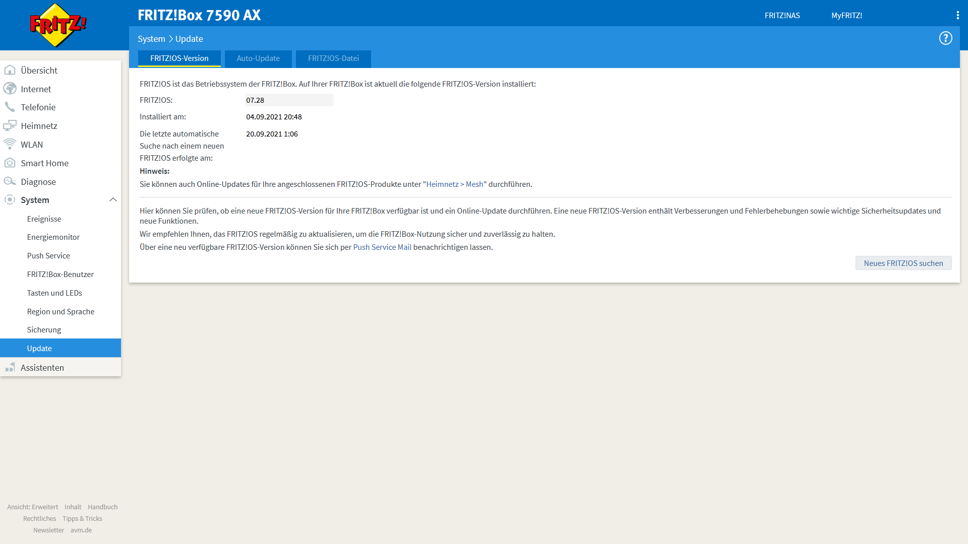 Gleichzeitig hab ich mir eine neue FritzBox 7590ax gekauft. (OS ist aktuell)