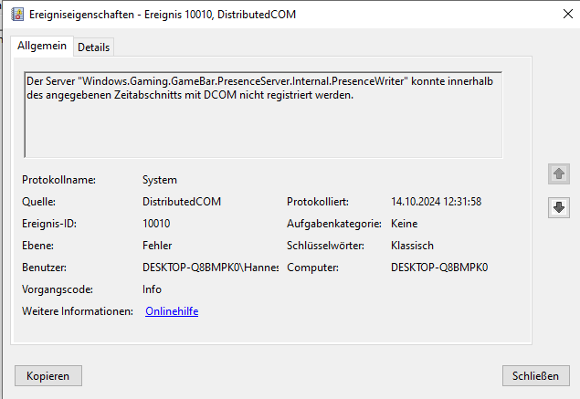 eYc schrieb:Ereignisanzeige kontrollieren, zum Zeitpunkt des Spiele-Starts (bzw. des Versuch's, die Spiele zu starten).
