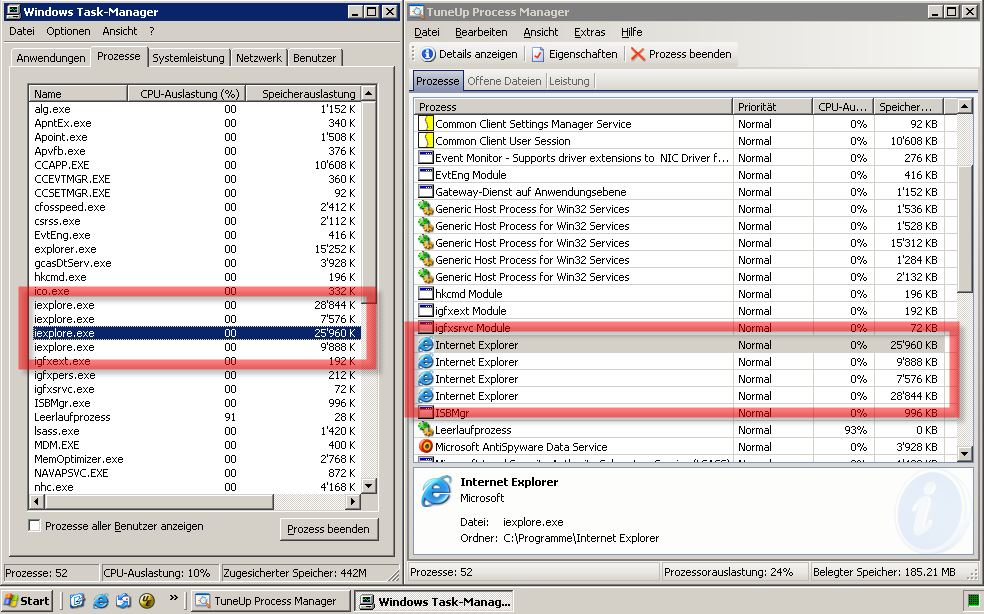 immer wieder 'verbleiben' Internet Explorer(s) im Task-Manager (Ctrl-Alt-Del) und 'fressen' ganz schön Speicher weg ;-( - obwohl die Systeme sauber sein sollten ,-)