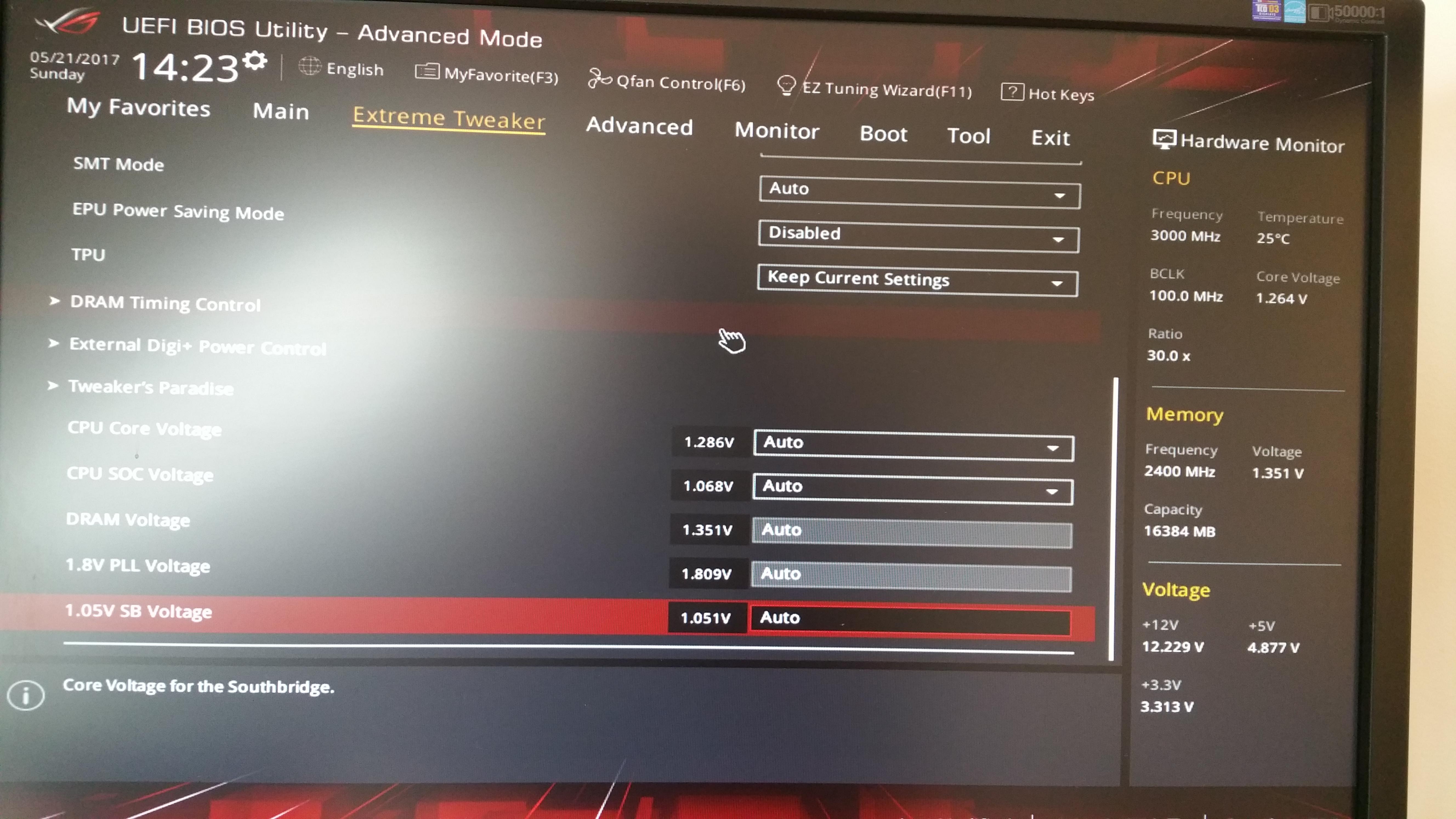 Hast du die Spannungen und Timings per Hand eingestellt wie von mir angegeben? Die SOC Spannung ist auch auf 1.1V?