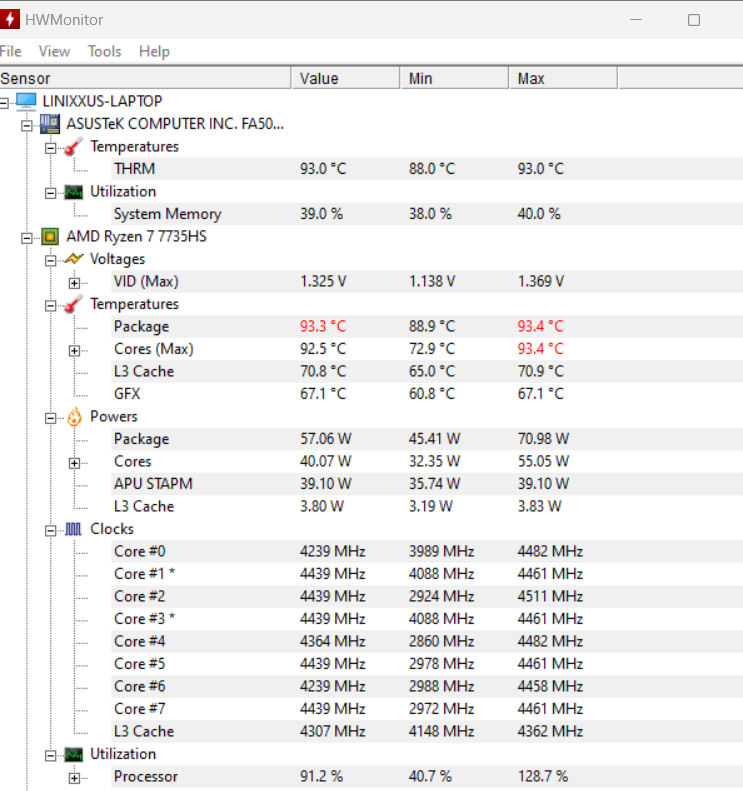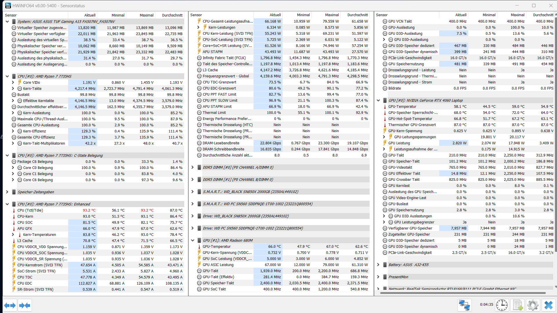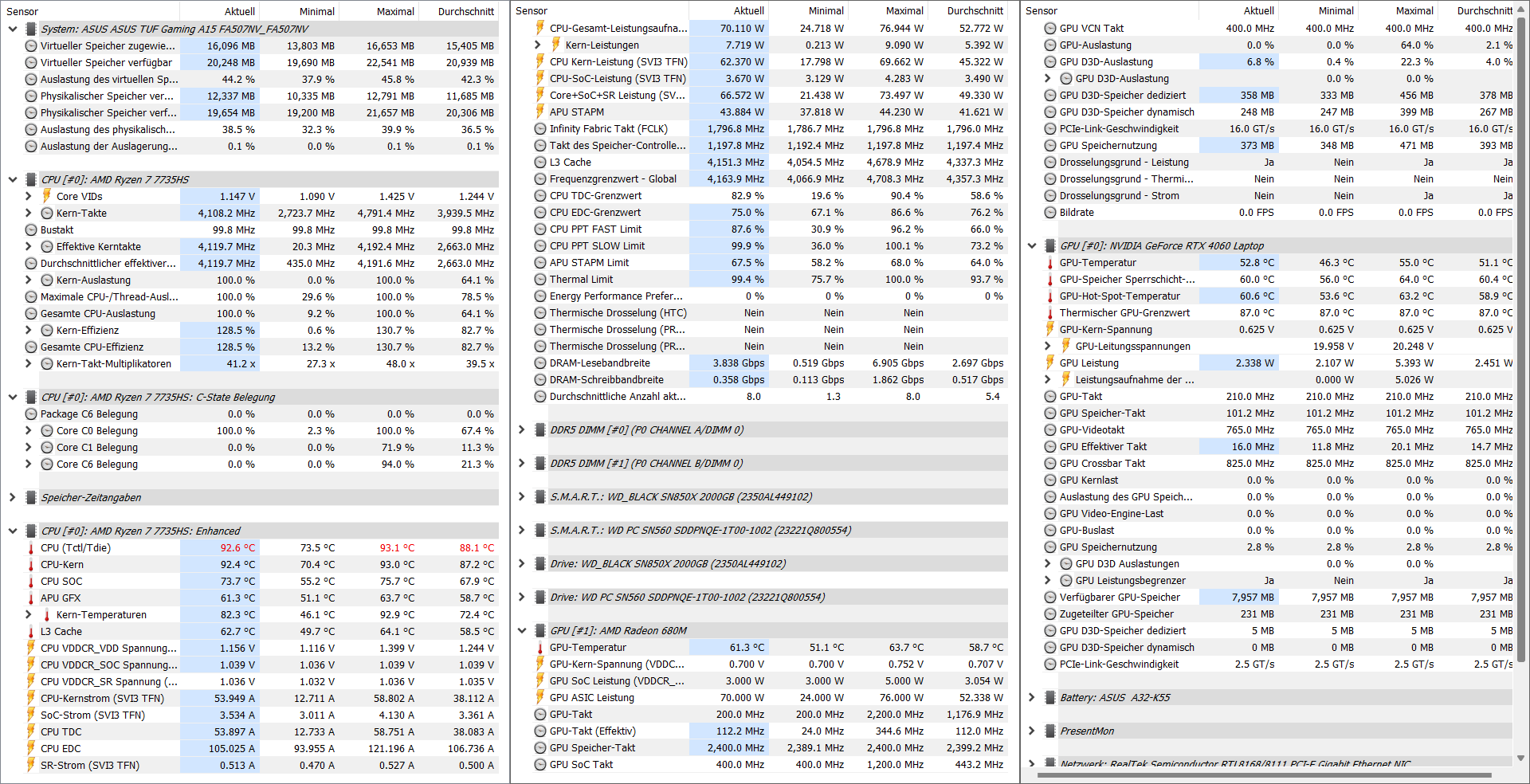 Fazit: Wer mich gut kennt, dem ist bekannt, dass ich mir normalerweise Intel Systeme aufbaue. Aber ich bin mit dem Laptop sehr positiv überrascht und auch bisher sehr zufrieden. War jedenfalls die richtige Entscheidung, hier auf AMD zu setzen. Denn die Leistungsaufnahme des Prozessors fällt tatsächlich sehr gering aus und im Schnitt sind um die 4,2 GHz (Boost auf einem Kern bis 4,7 GHz) auf allen Kerne anliegen.