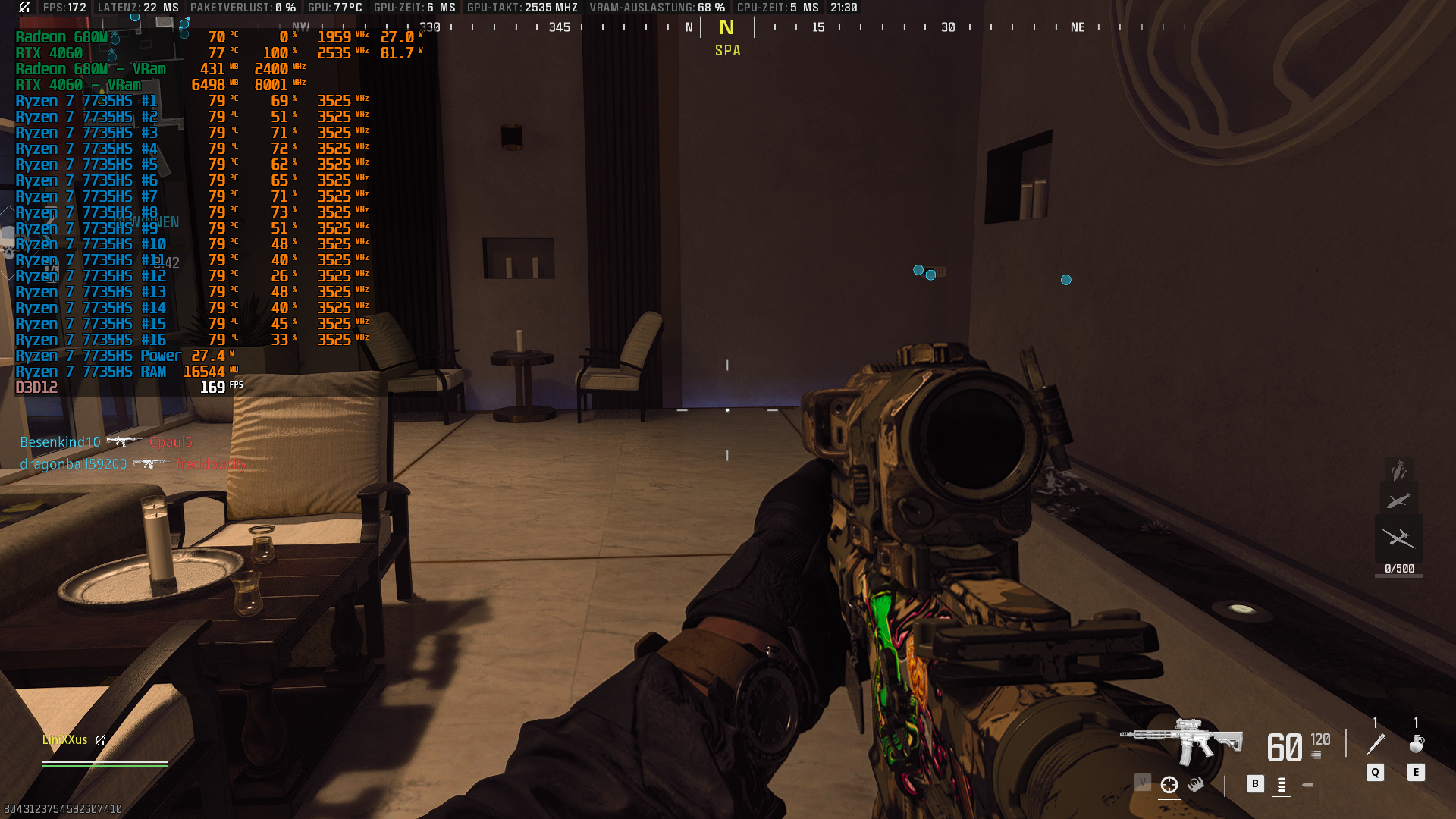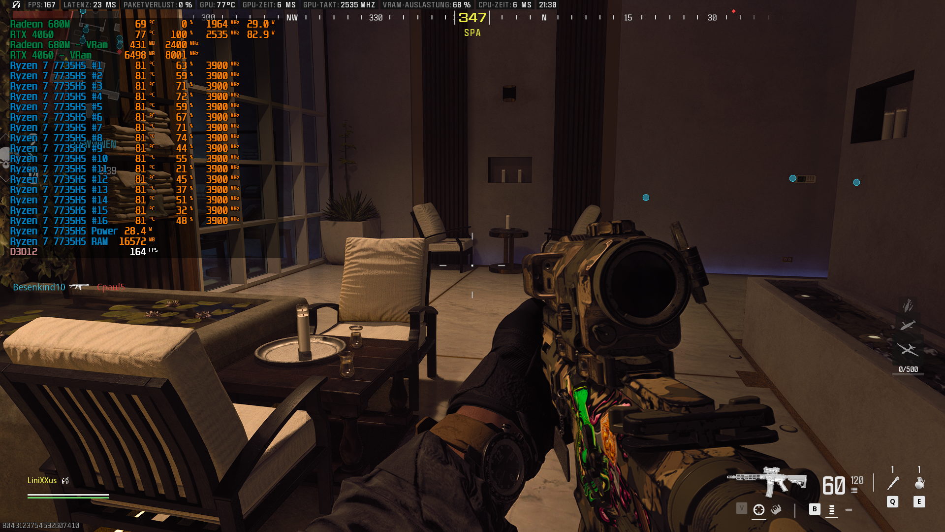 Mit Call of Duty Modern Warfare 3 sind es um die 140 - 160 FPS.