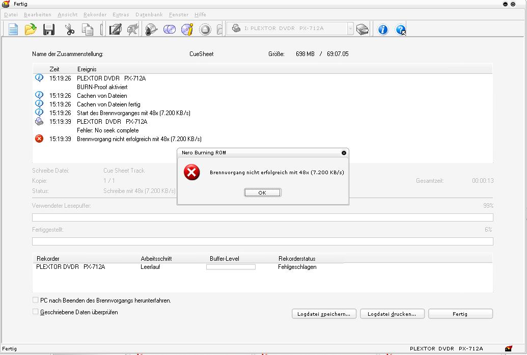 Ich habe in meinem System den Plextor PX-712A verbaut und seit kurzem kommt immmer die fehlermeldung wie sie auf dem bild ist.