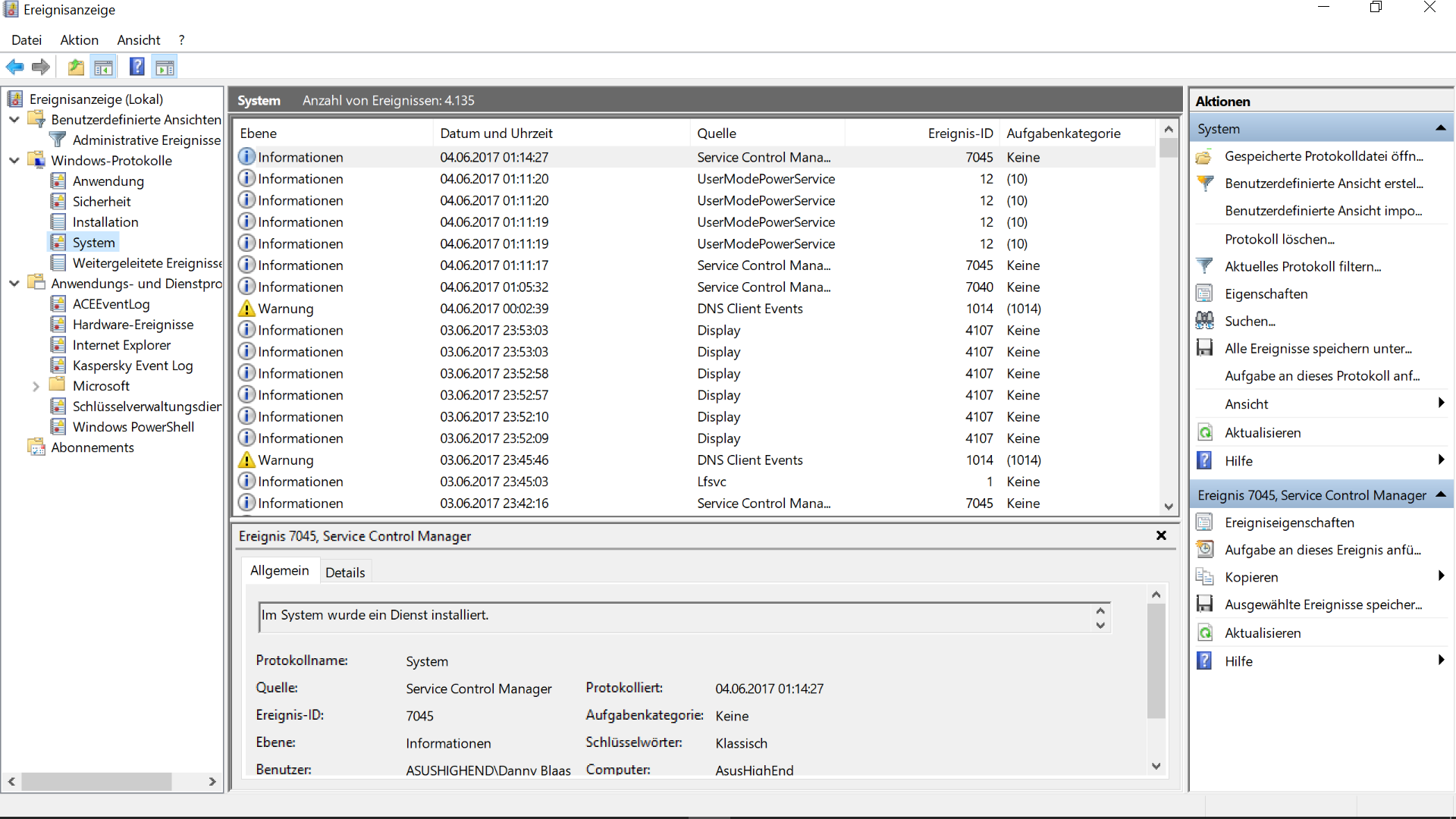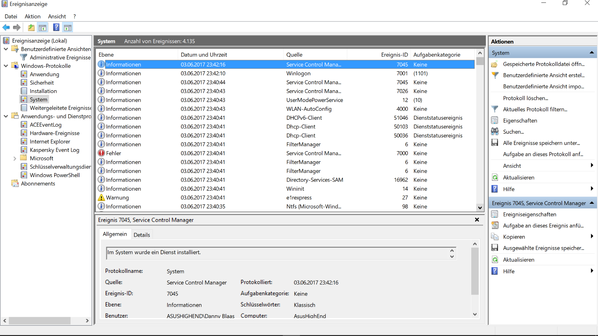 Mein restliches System besteht aus: