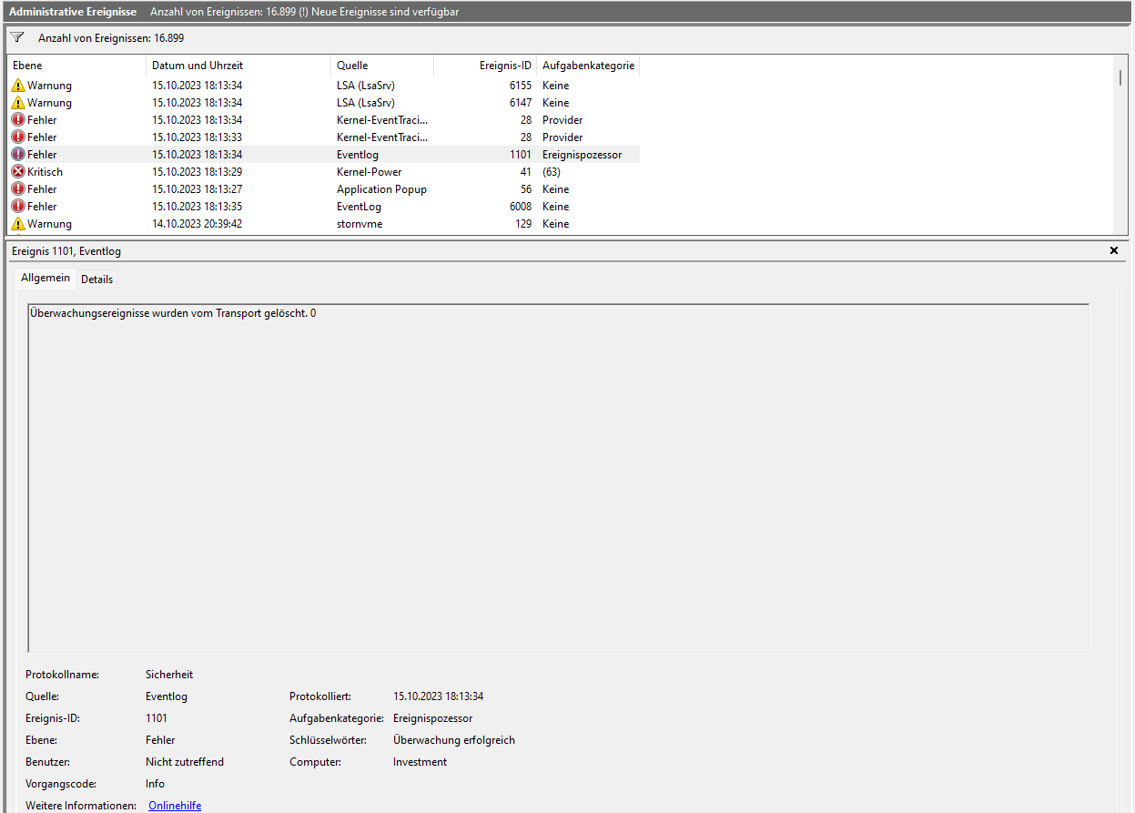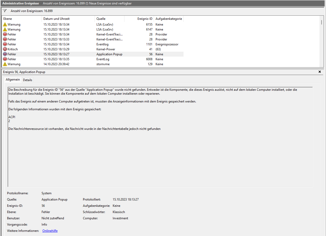 i5 13600kf, Gigabyte B660M Gaming X (neueste BIOS version), AMD RX7900XT (neueste Treiber), 32GB Corsair DDR4 Ram, zwei m.2 SSDs, eine Sata SSD und eine HDD.