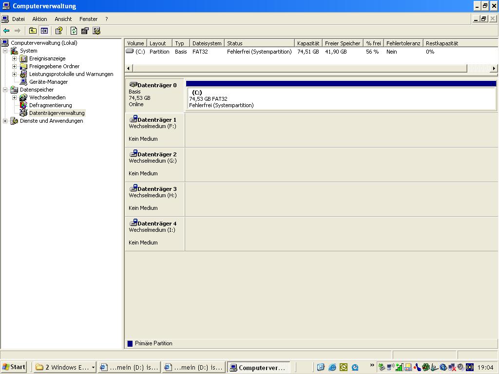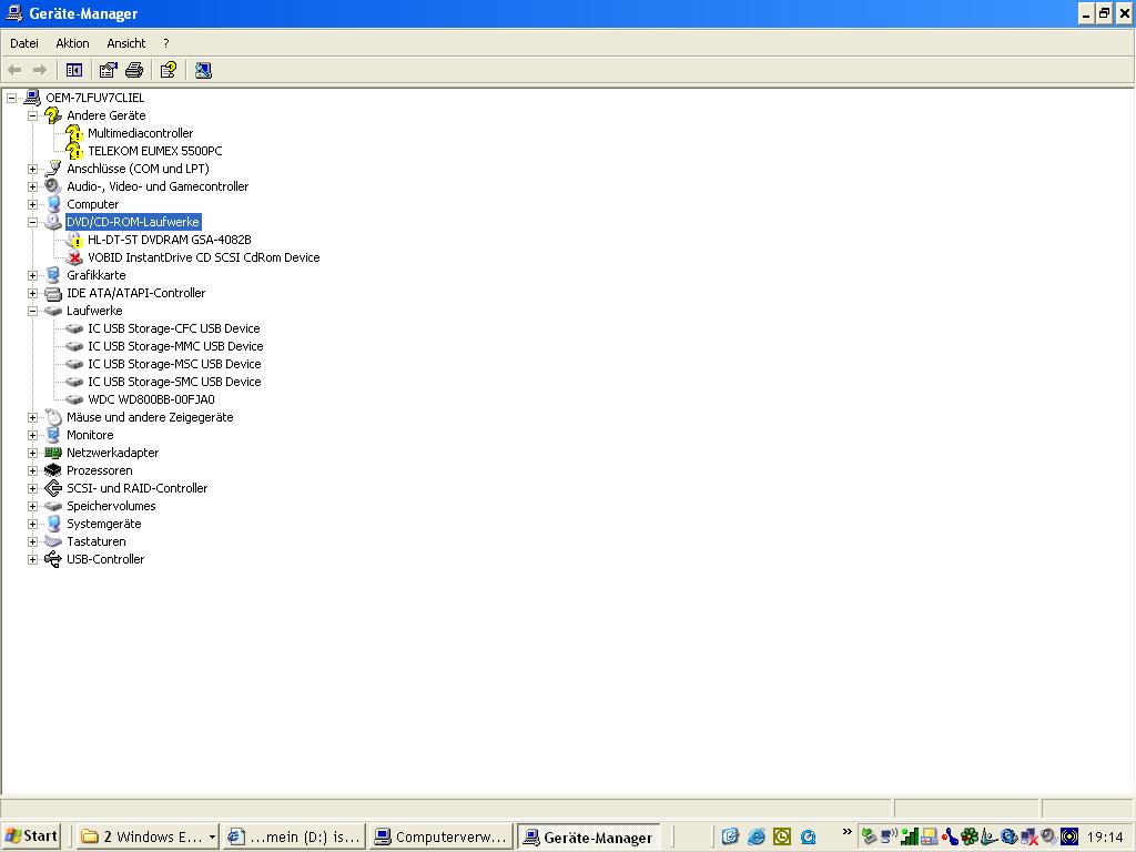 Wollte gerade was brennen, aber irgendwie existiert mein ganzes Laufwerk (D: ) nicht mehr!!! Wie kann denn das sein? Alles andere, von C bis I, ist noch da. Was mach ich jetzt? Ich kann mir nicht mal mehr eine ganz normale CD anhören!