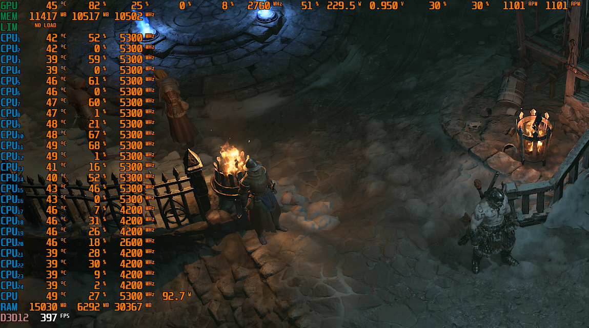 Bin nochmal schnell eingestiegen. Ohne FrameCap habe ich in der Stadt knapp 170Fps und dabei zieht er auch 68Watt. Denke viele mehr wird es hier nicht werden, da ich eher im CPU Limit bin, nachdem meine Grafikkarte nicht zu 100% ausgelastet ist.Intruder schrieb:meinst du mit Diabolo Diablo 3 oder 4? Das wäre aber ganz schön viel 🧐