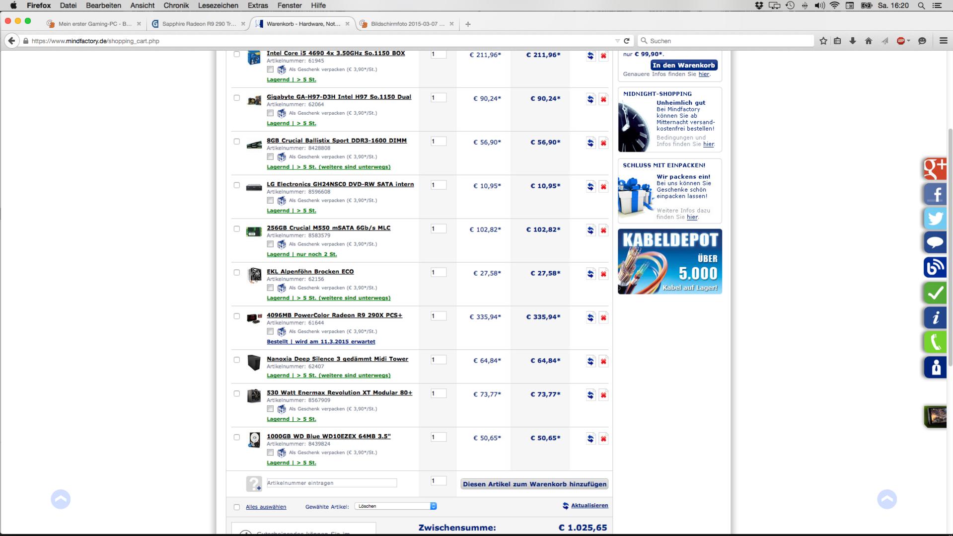 Ich bin mit der Konfiguration immer noch sehr zögerlich, da ich nicht weiß, ob die Komponenten so optimal zusammenspielen und ob es ein System ergibt, welches mich die nächsten Jahre solide begleiten wird.