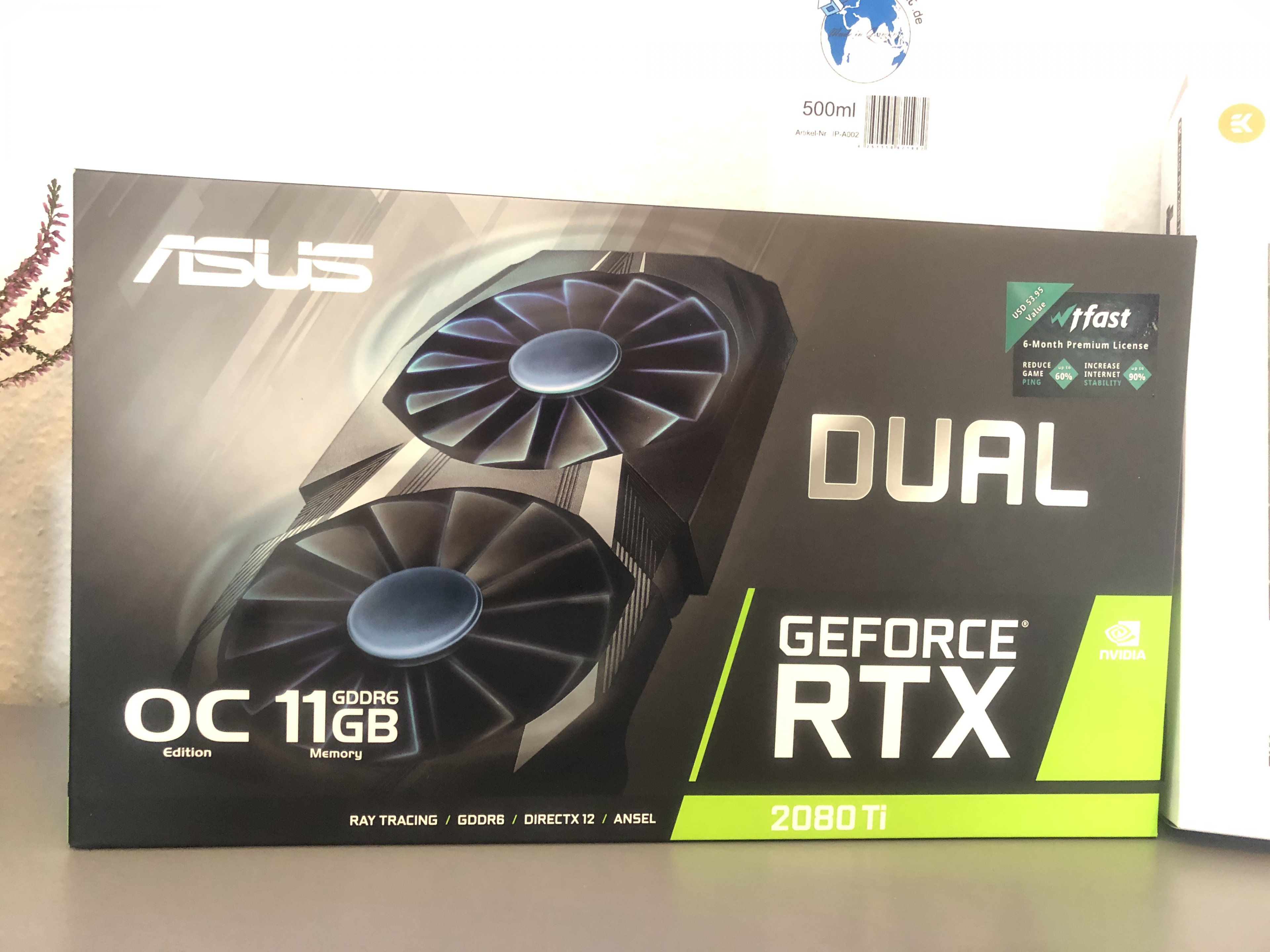 - Grafikkarte: Asus GeForce RTX 2080 ti Dual OC + Lian Li PCI-Riser 380mm