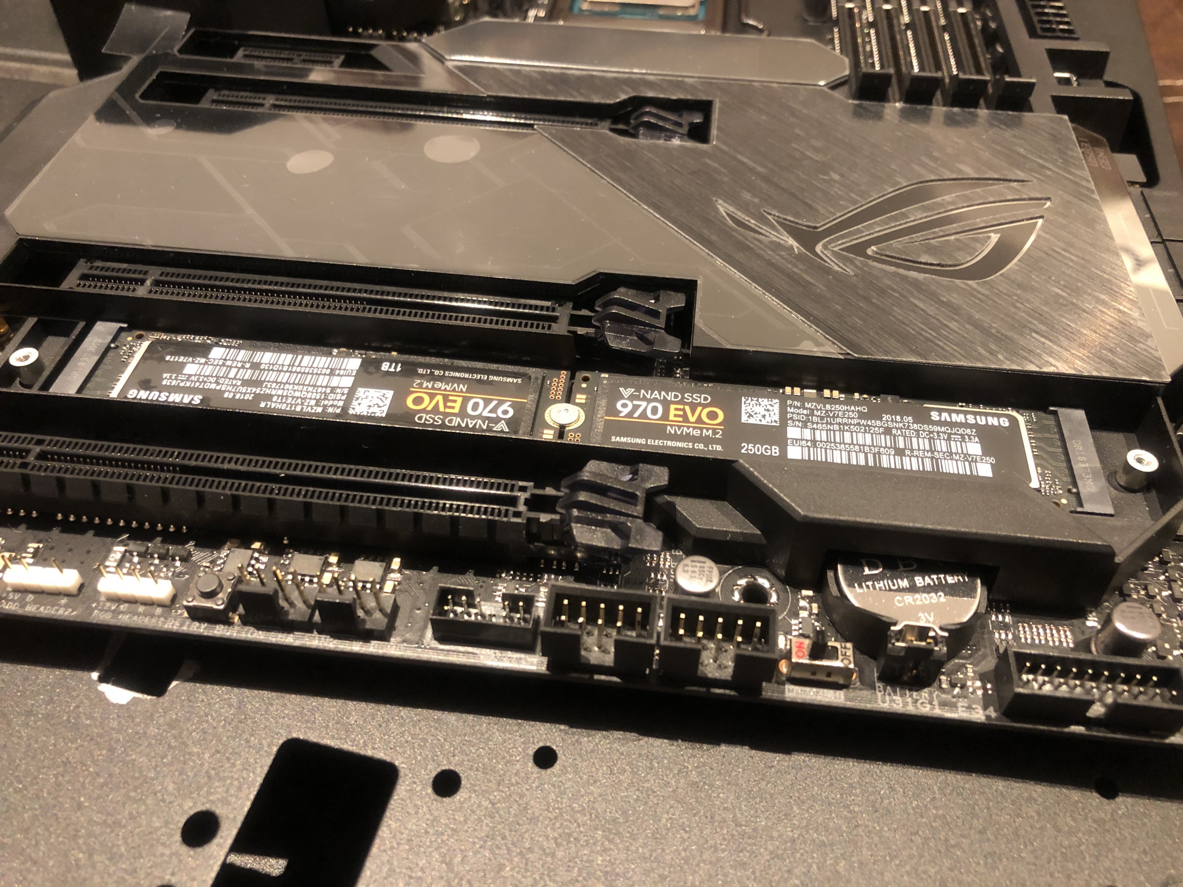 - Festplatten: Samsung EVO 970 SSD.M2 250GB (Windows 10) + 1TB (Stuff)