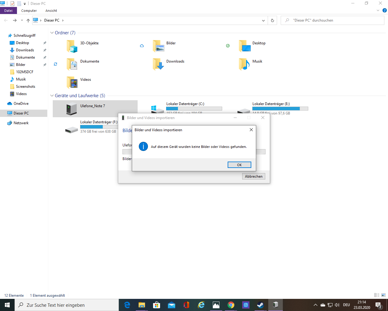 ich hab mir grad ein smartphone gekauft. wenn ich das am pc anschliesse. dann erwarte ich das bilder die ich aufgenommen habe auch unter ulfeone erscheinen genauso wie wenn ich eine kamera anschliesse. aber da kommt gar nichts. wie ist das zu erklären