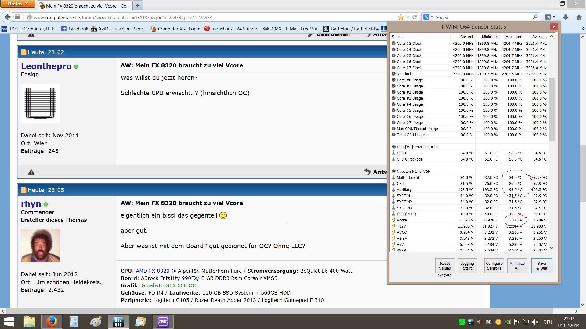 Dazu kommt, das CPU-Z und HWinfo64 mir nur so ca 1,344 Volt anzeigen,obwohl ich 1,4 Volt gefixt habe.