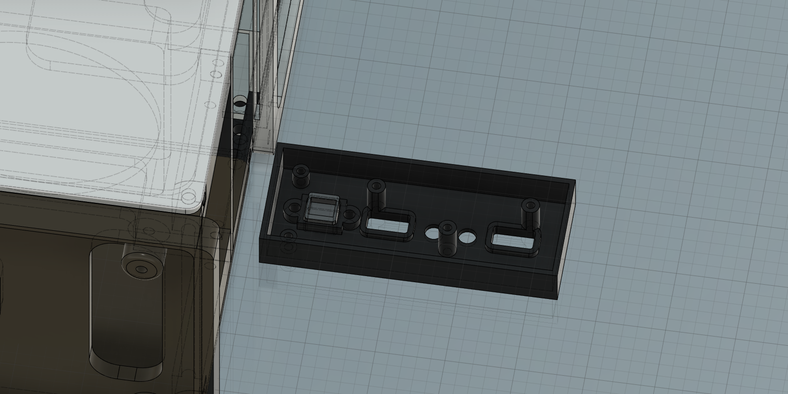 Ich habe das Panel weiter nach Hinten versetzt, um kleine Sticks auch mit geschlossener Front nutzen zu können und auch Audiokabel einzustecken und die Front schliessen zu können.