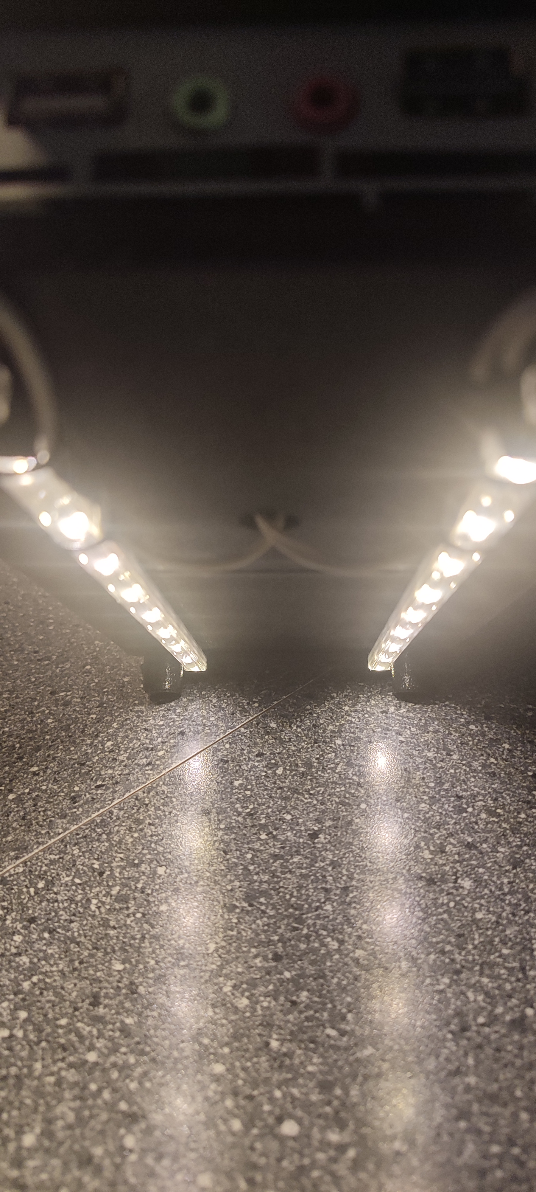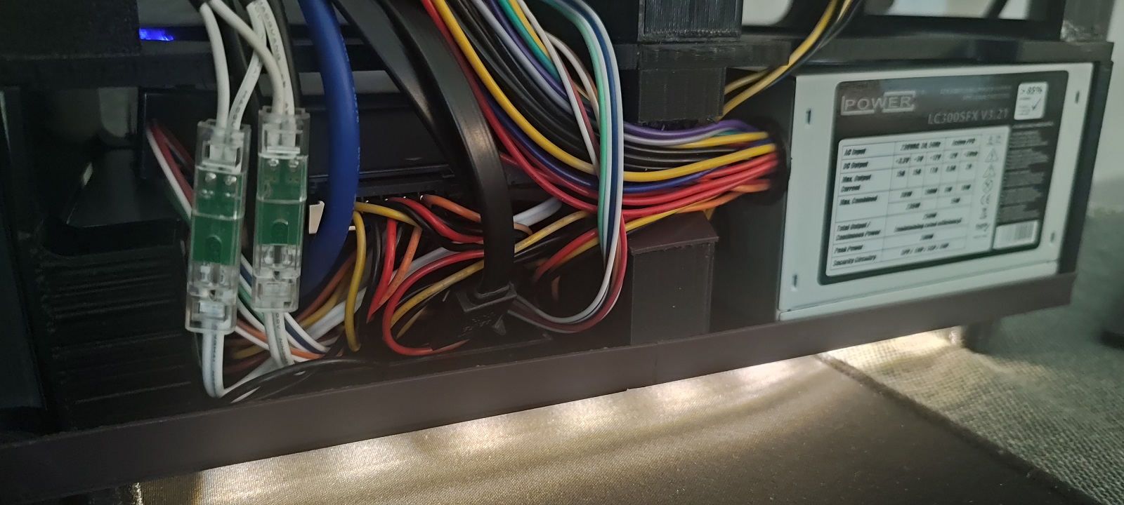 Ein wenig Beleuchtung wollte ich dann doch, allerdings ungerne in RGB. Da mein Mainboard dafür sowieso noch nicht gerüstet ist, habe ich mir gedacht, dasss ich einfach meine alten LED-Leisten vom 3D-Drucker klaue und diese unten am Gehäuse anbringe:
