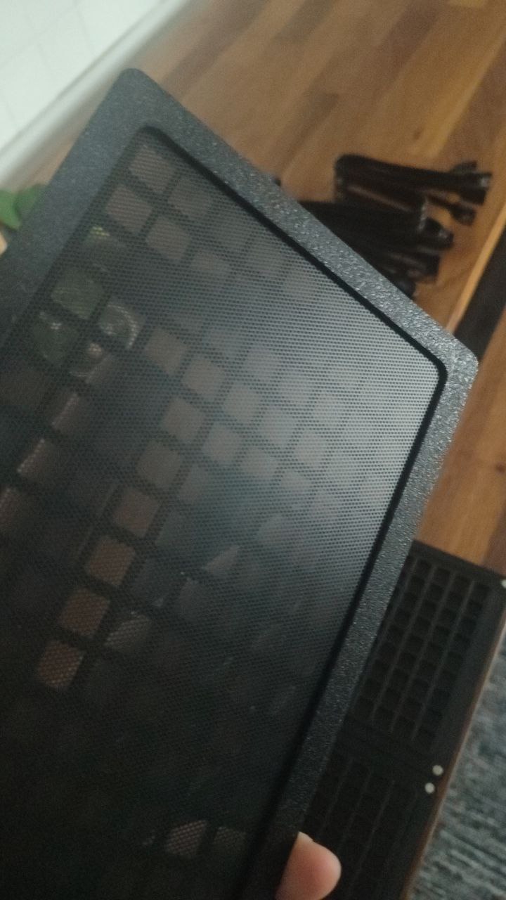 Als Mesheinsatz hab ich einen Set von 400x300mm bei Amazon gekauft und diese passend an die Blenden angepasst. Verstärkt ist das ganze mit einem Inlay aus ABS im Gittermuster, damit das Mesh nicht in sich zusammenfällt.