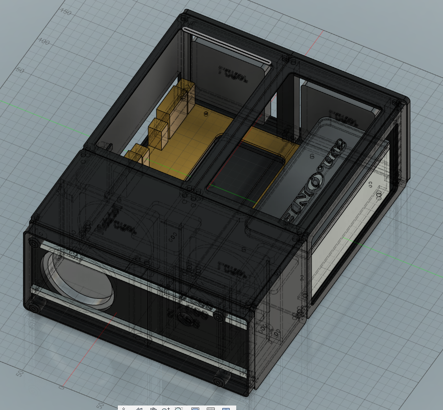 Im unteren Teil des Mainboard-Trays habe ich 2 Aussparungen für 92mm Lüfter vorgesehen, ebenso wandern da nochmal 2 Stück in den oberen Deckel. Diese sind allerdings noch auf dem Weg zu mir, zusammen mit weiteren 5mm Magneten. Die Halterungen und Löcher dafür werden später gedruckt/gebohrt. (auf der Zeichnung in Fusion besser ersichtlich.