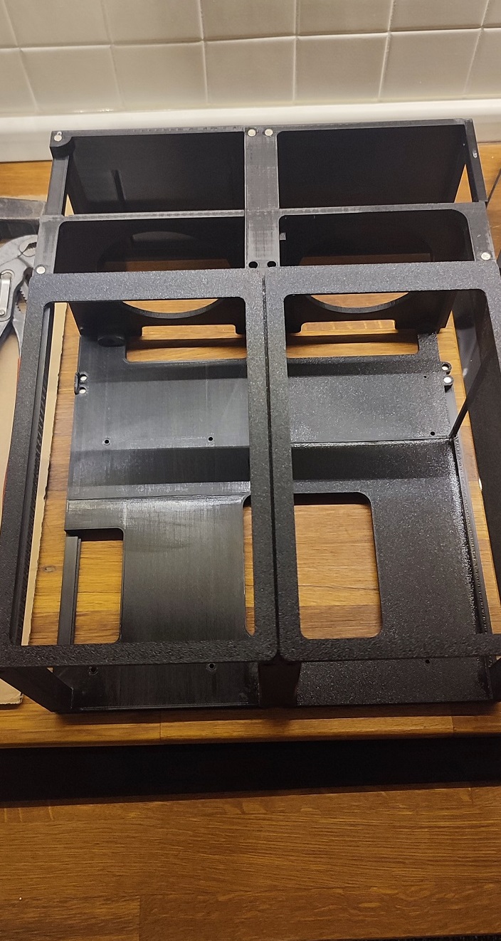 Da ich mehrere Drucker besitze und nicht gerne lange warte, habe ich die Modelle alle für einen Bauraum von 220x220 geschnitten und die Teile dann mit Aceton geklebt. Das sieht man natürlich hier und da (nur an den inneren Teilen).
