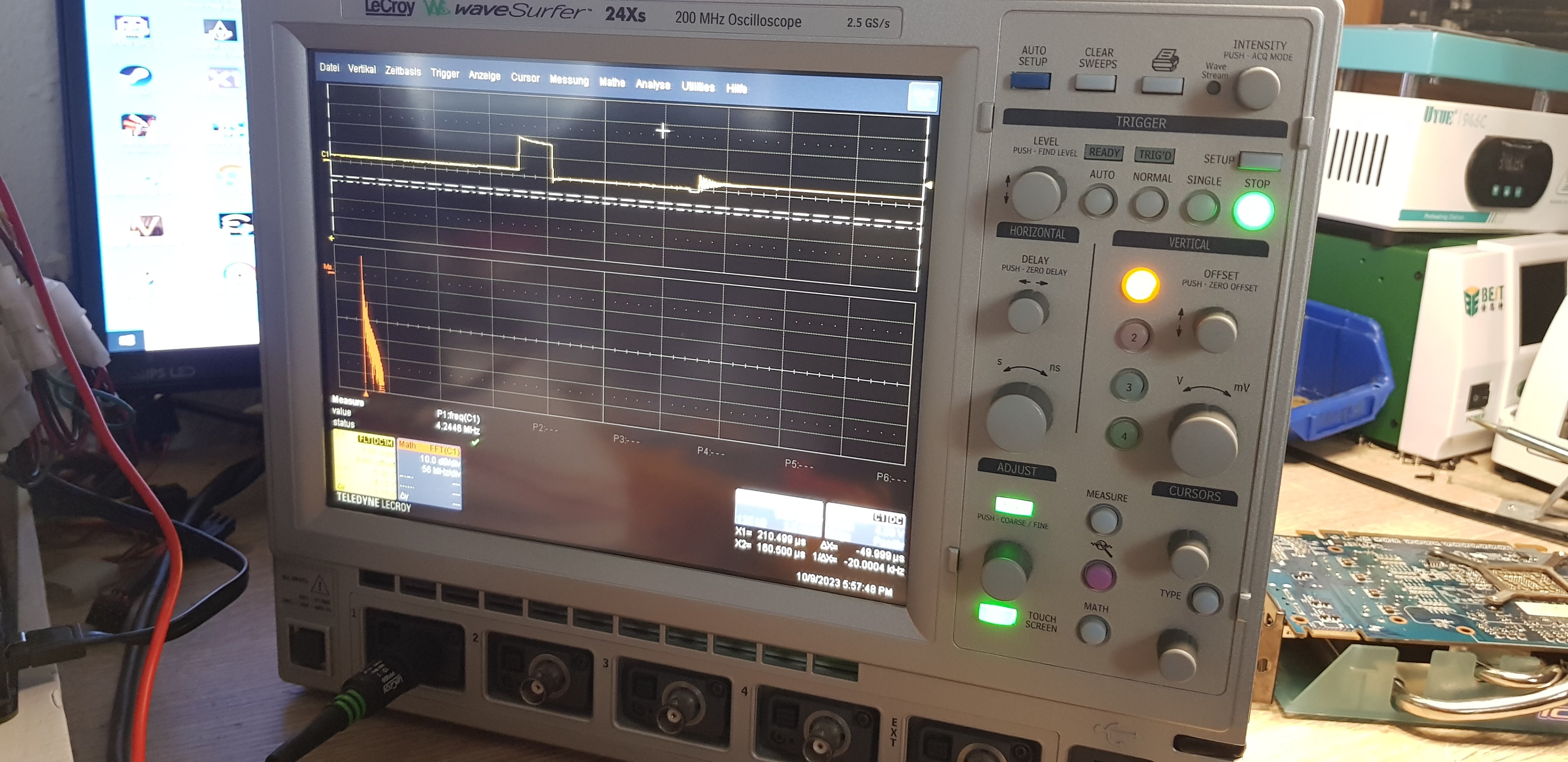 Ein LeCroy WaveSurfer wird dir einfach überlassen...Masterchief79 schrieb:Und ein bisschen habe ich mit dem Oszi gespielt, das mir mein Dad überlassen hat. Krasses Teil.