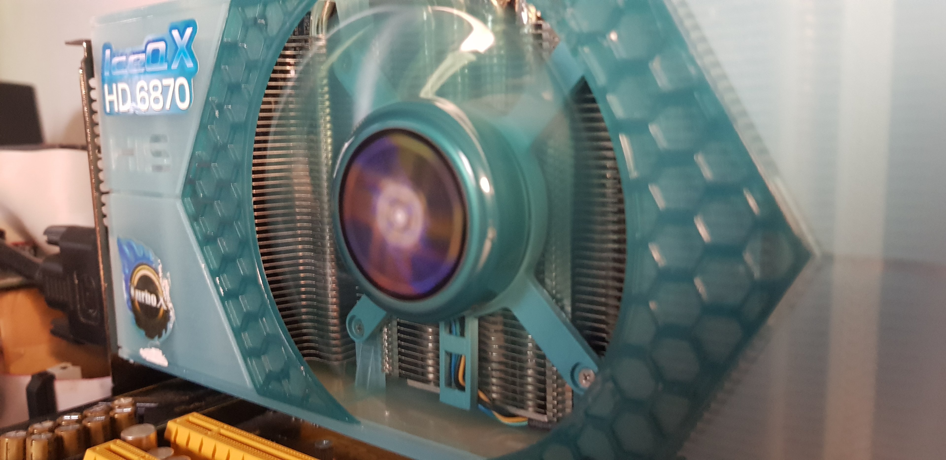 Jetzt läuft sie jedenfalls völlig normal, als wäre nie was gewesen. Auch ein sehr starker Kühler für so eine Karte, mit 4 Heatpipes, bleibt schön kühl und leise, und ist in sehr gutem Zustand. Die werde ich wohl behalten.