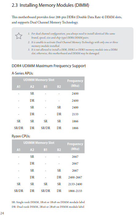 Ich habe laut der Beschreibung von ASROCK, den RAM Slot A2 und B2 für Dual Rank und vorgesehene 2400MHz mit den beiden 8GB RAM belegt.