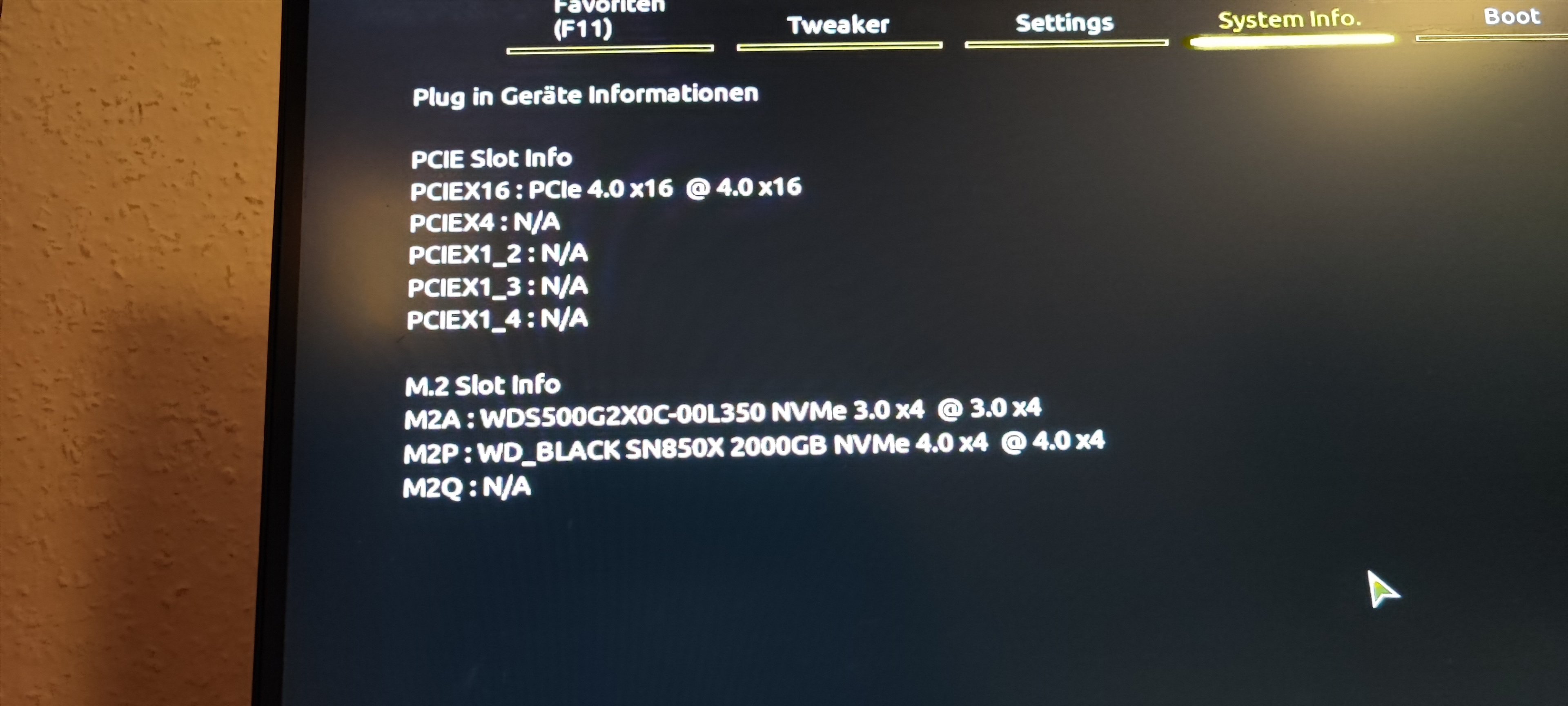 Ich habe meine alte m2 SSD aus dem System (WD 500GB) genommen. Darauf waren Windows 10 und ein paar Programme.