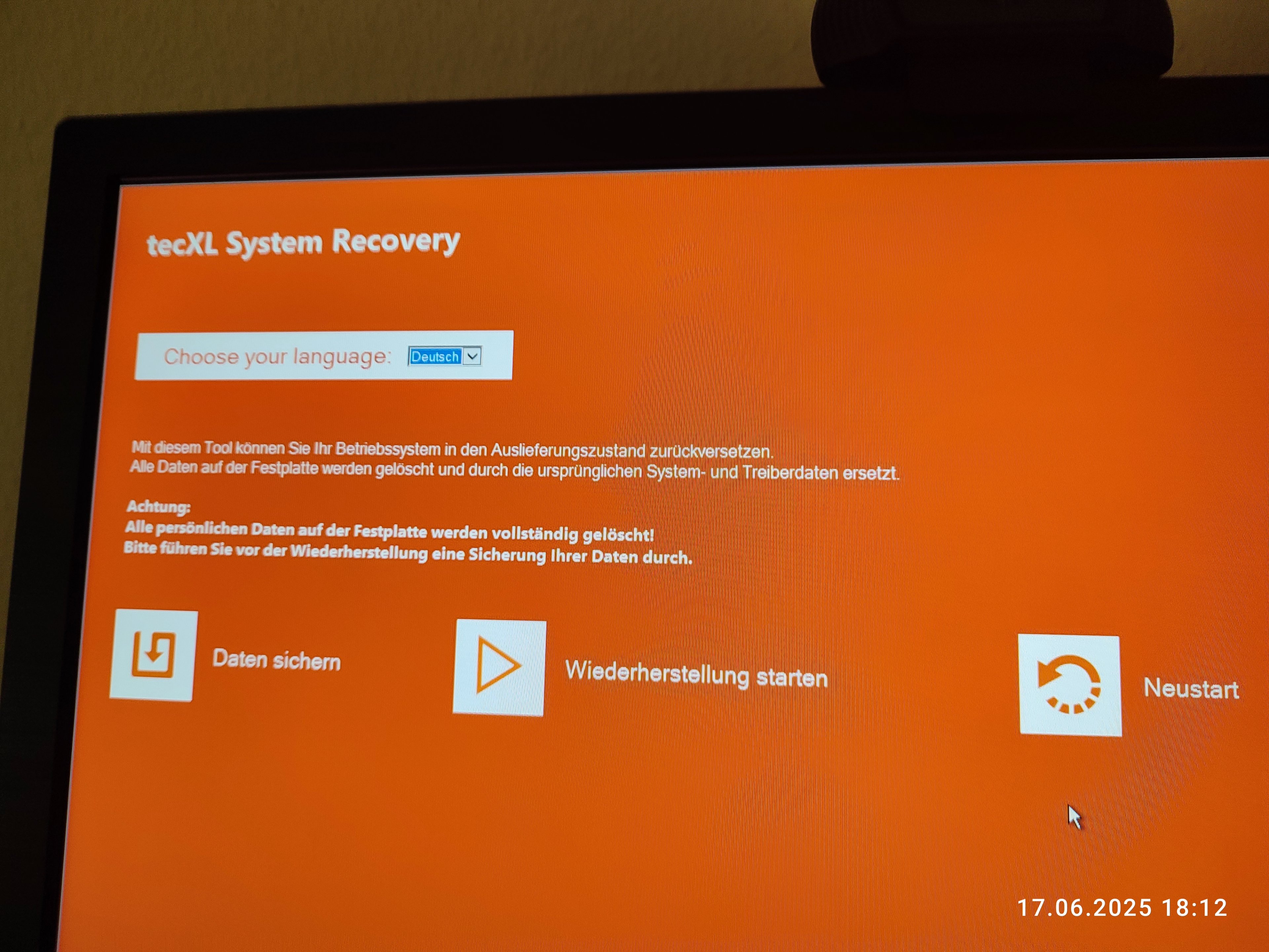 Wiederherstellung auswählen.