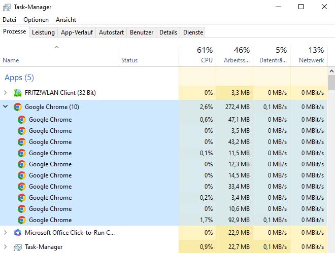 Alexander2 schrieb:(Taskmanager immer auf haben und im Auge behalten, oder den Ressourcenmonitor.