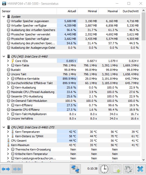Auch die Temperatur der CPU ist so niedrig, das trotz kurzer last beim öffnen des Taskmanagers sich da nicht viel getan hat. Scheint also auch kein Auslastungsproblem der CPU zu sein.