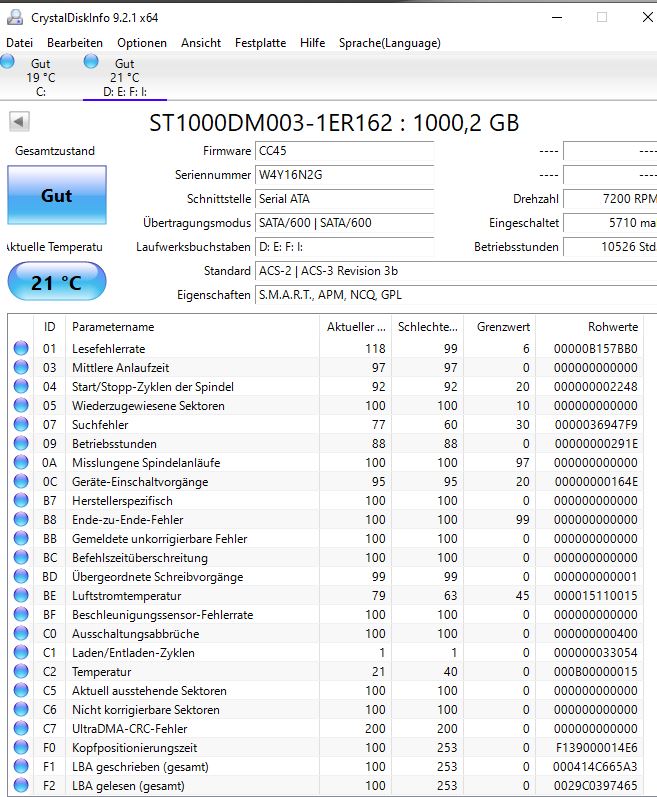 Und sagen die Ergebnisse Dir jetzt etwas?purzelbär schrieb:Ich hatte dir gestern 2 Mal geschrieben, du sollst mal deine SSD und HDD mit CrystalDiskInfo prüfen und die Ergebnisse hier posten und du ignorierst das einfach. Finde ich nicht gut von dir.