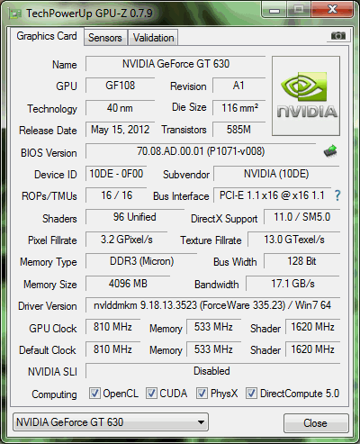 Grafikkarte: NVIDIA Geforce GT 630