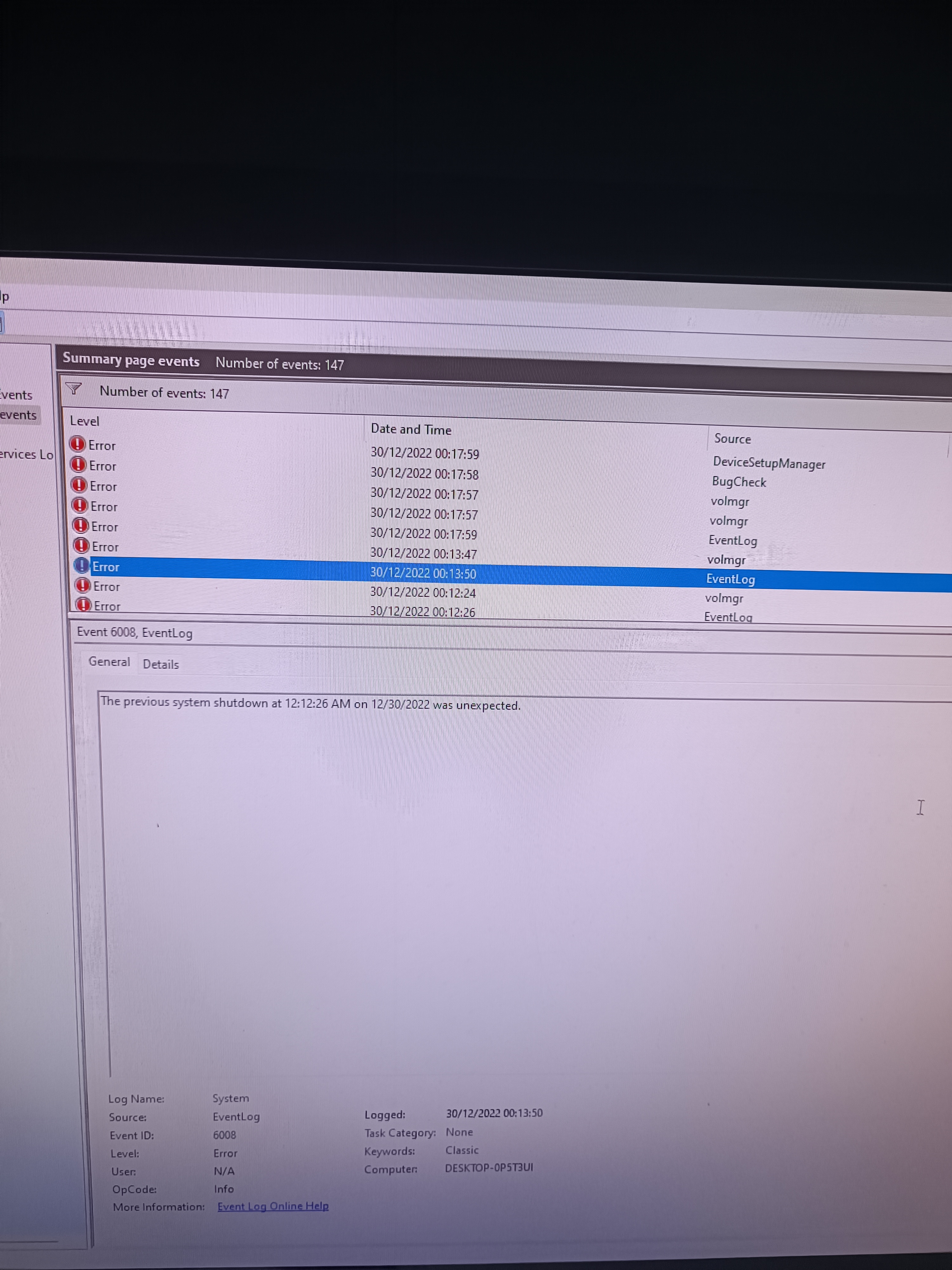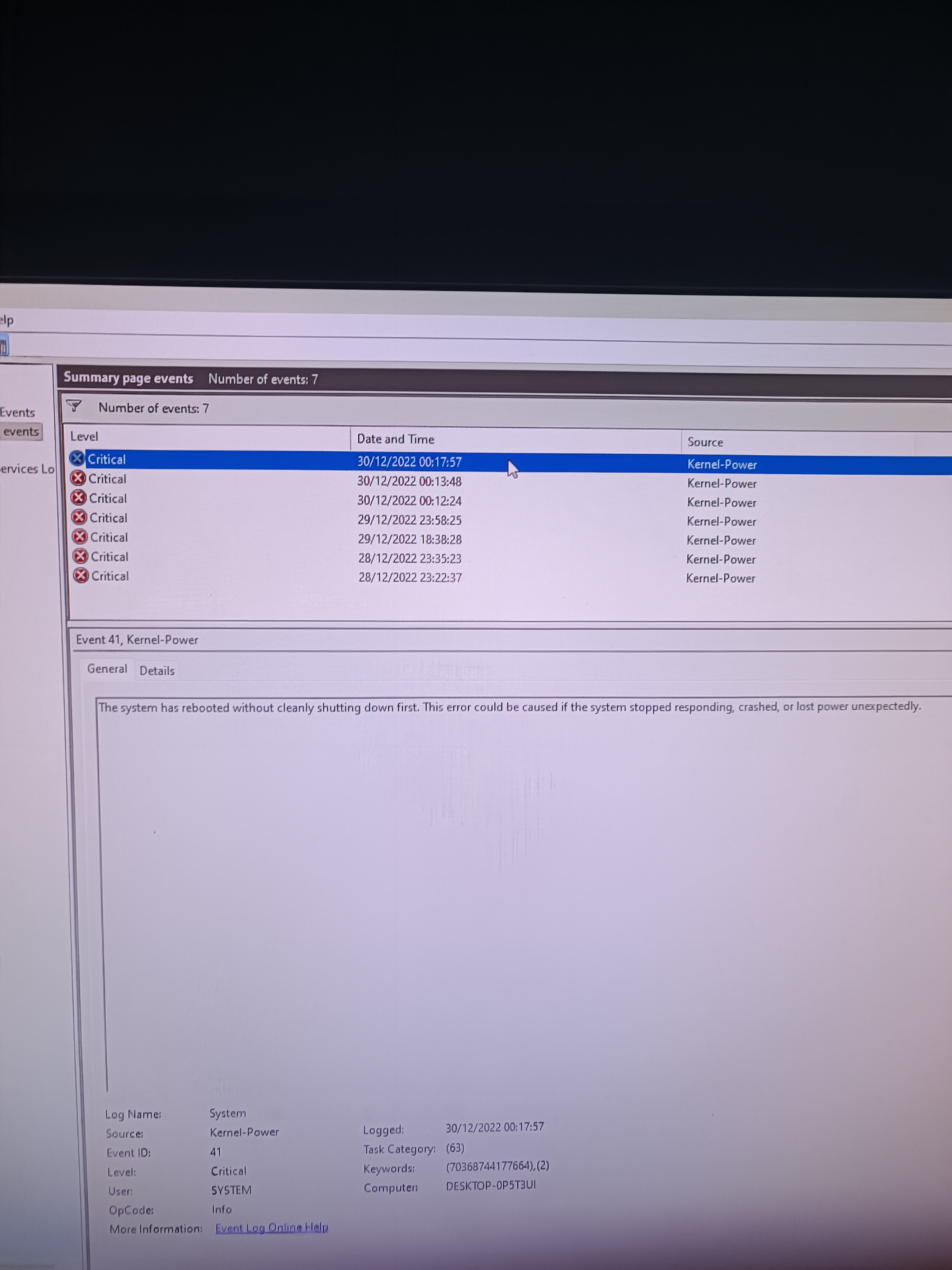 Ich habe gestern meinen Pc neu aufgesetzt. Er hat normal funktioniert, aber dann habe ich bemerkt, dass ich die GPU Software nicht installiert hab. Deswegen habe ich es installiert und währenddem Download ist mein Computer abgestürzt und seit dem stürzt er direkt ab wenn ich mich in windows einlogge oder während dem einlogen und er spuckt auch die ganze Zeit unterschiedliche Fehler aus(siehe Anhang).
