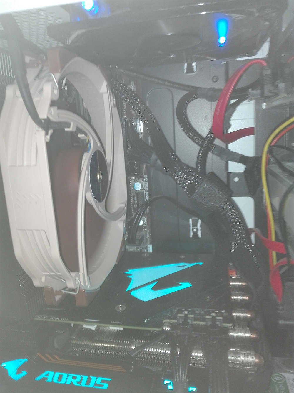Bei den ersten Starts, lief der Kühler auf 100% Auslastung. Kurz gezockt (kein Problem, war nur ca. 2 Minuten) Und dann anschließend der laute Noctua D15 im BIOS auf Level 1 gestellt und auf automatisch gesteuert natürlich.