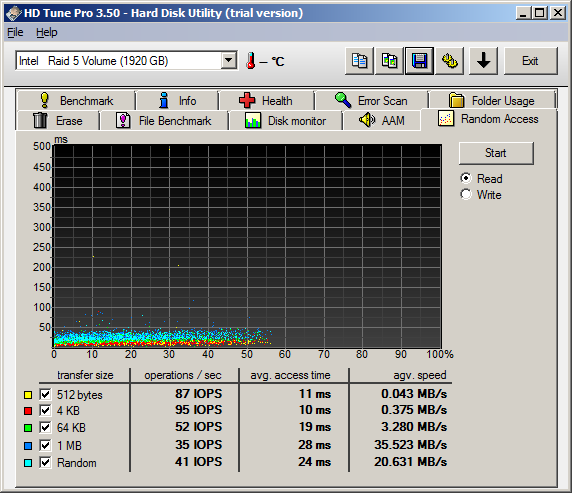 Mal ganz davon abgsehen, dass das System auch "gefühlt" wesentlich schneller arbeitet, was eher nicht an dem Wechsel von Vista zu Server liegt, denn das hatte ich schonmal gemacht, hat HD Tune erstaunliche Leistungsdaten geliefert. Diese findet ihr in den hoffentlich aussagekräftig beschrifteten bilder im Anhang...