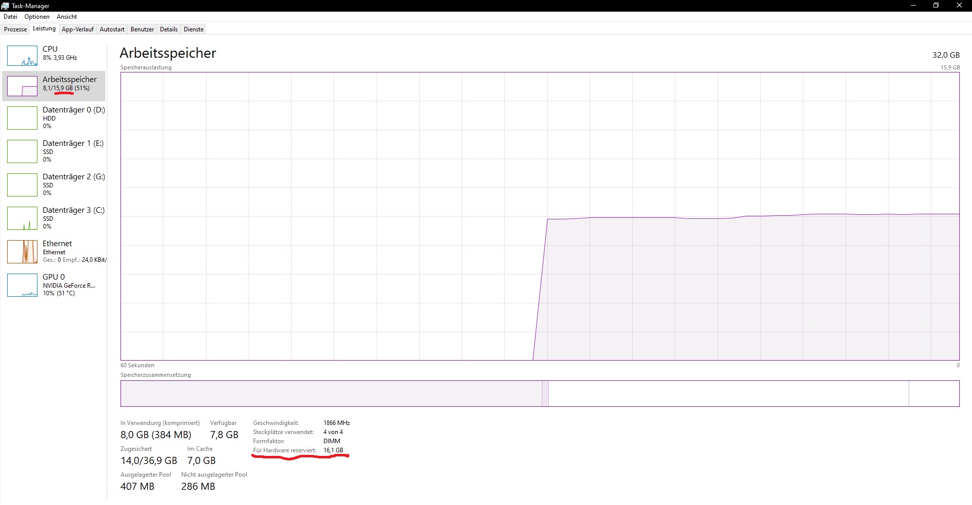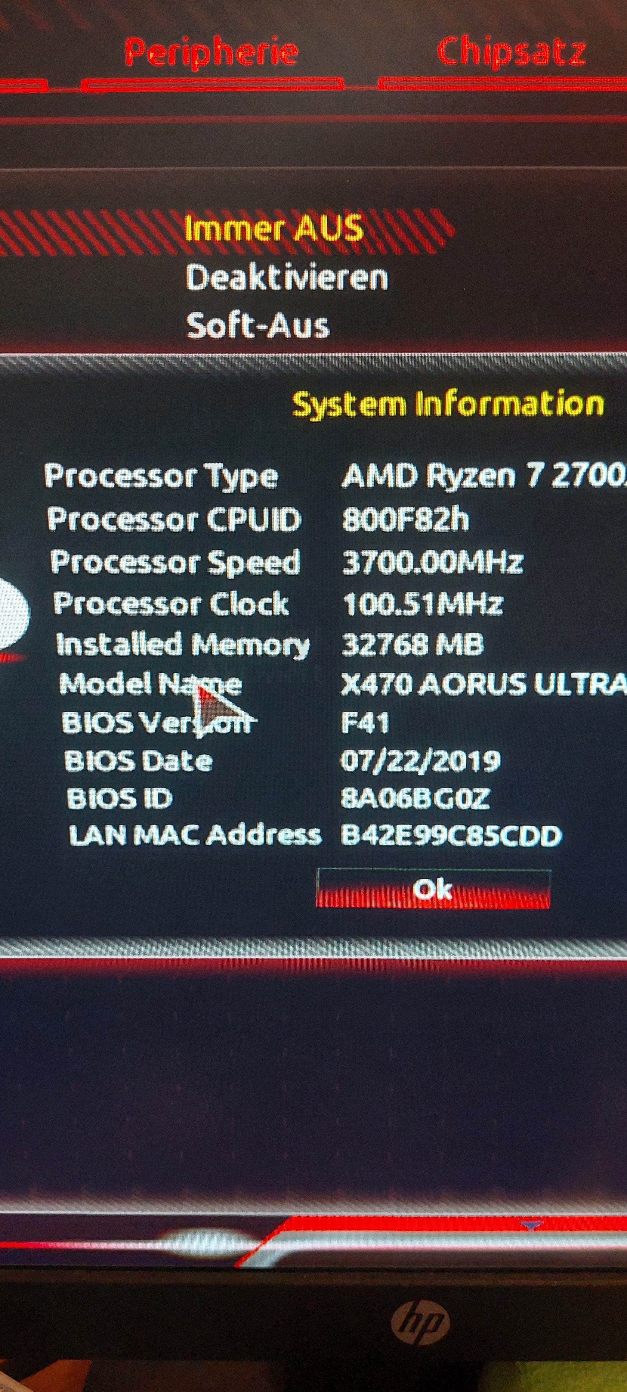 Wann hast das BIOS resettet? Bevor oder nachdem Du den Screenshot erstellt hast? Mit den Standardeinstellungen sollte der Speicher in der Regel laufen, wenn auch nicht zwangsläufig mit der optimalen Geschwindigkeit. Im Zweifelsfall würde ich auch bei ausgeschaltetem Rechner nochmal prüfen, ob die Riegel wirklich richtig im Slot sitzen. In den Standardeinstellungen sollte auch vom Einschalten weg eine USB-Tastatur funktionieren.