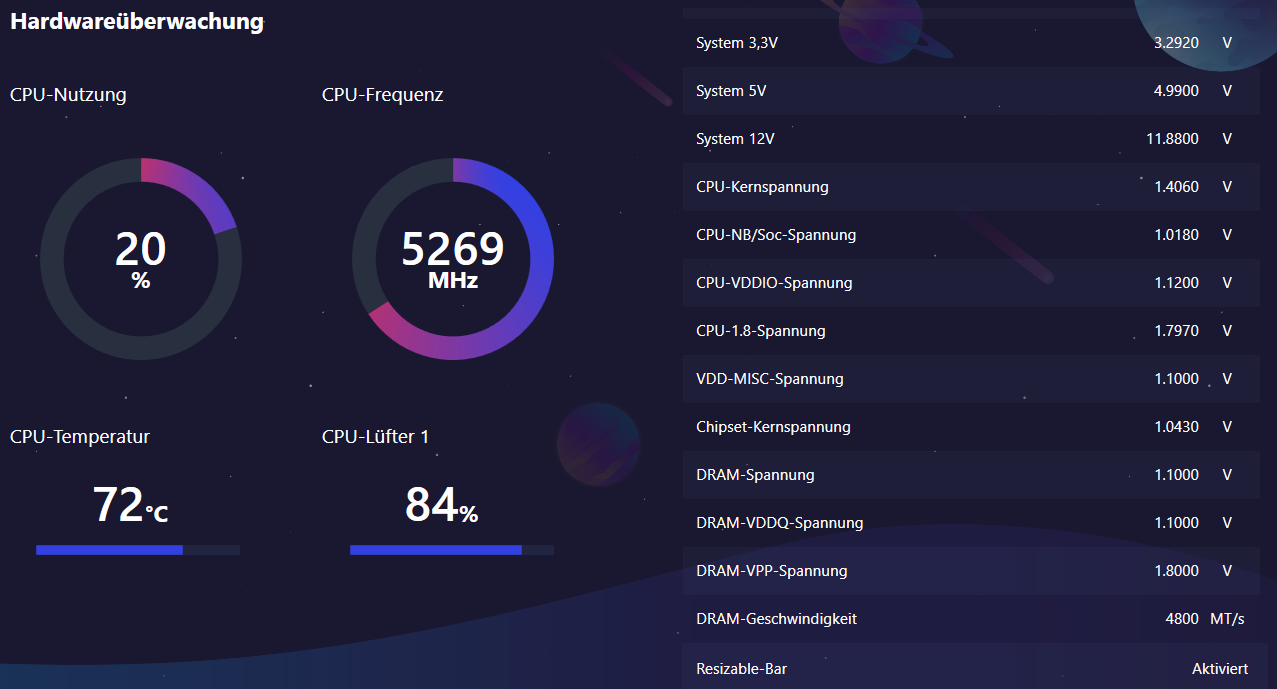 Ich habe natürlich in der Software zum Motherboard Kühlereinstellungen zu verändern, ohne wirklichen Erfolg. Jemanden drüber gucken lassen über mein Bauwerk, ob ich da kardinale Sch... verzapft hab. Wärmeleitpaste noch mal geprüft (ARCTIC MX-6)