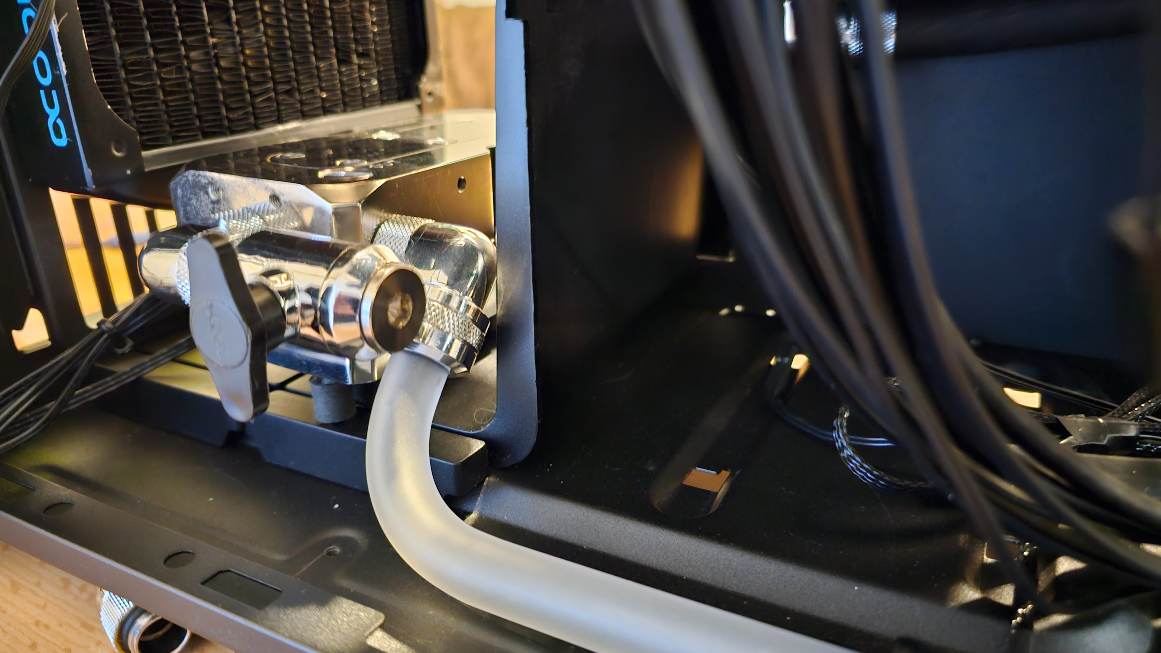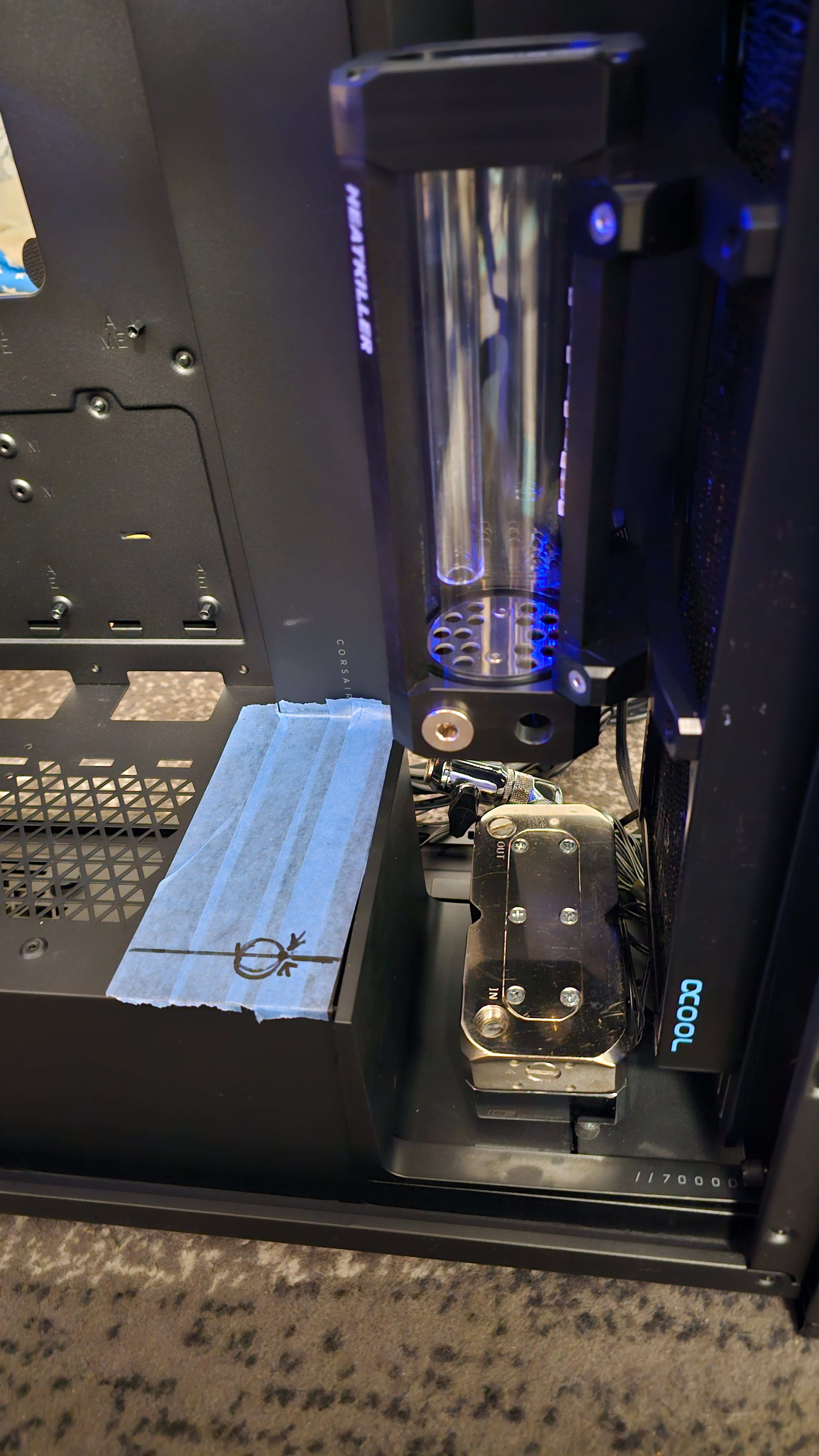 Diese Kabelabdeckung steht etwas ab und dahinter ist noch eine Halterung für einen 360er Radiator. Daher muss ich mir das erst mit dem Gehäuse genauer anschauen. Zumindest habe ich da vor, entweder durch diese Abdeckung zu gehen oder mir eine Acrylglasplatte anfertigen zu lassen und auf die Halterung des 360er Radiator zu montieren.Es soll praktisch so ähnlich werden, wie eine Distroplates. Nur dass ich dort jeweils immer mit einer Schottverschaubung durchgehe. Habe auch einiges an Schottverschraubungen momentan verbaut, daher müsste ich dazu genug da haben. Was ich über dem 240er Radiator eingezeichnet habe, soll dahinter sein oder unter dem Radiator, da ich es nicht so detailliert drauf zeichnen konnte.