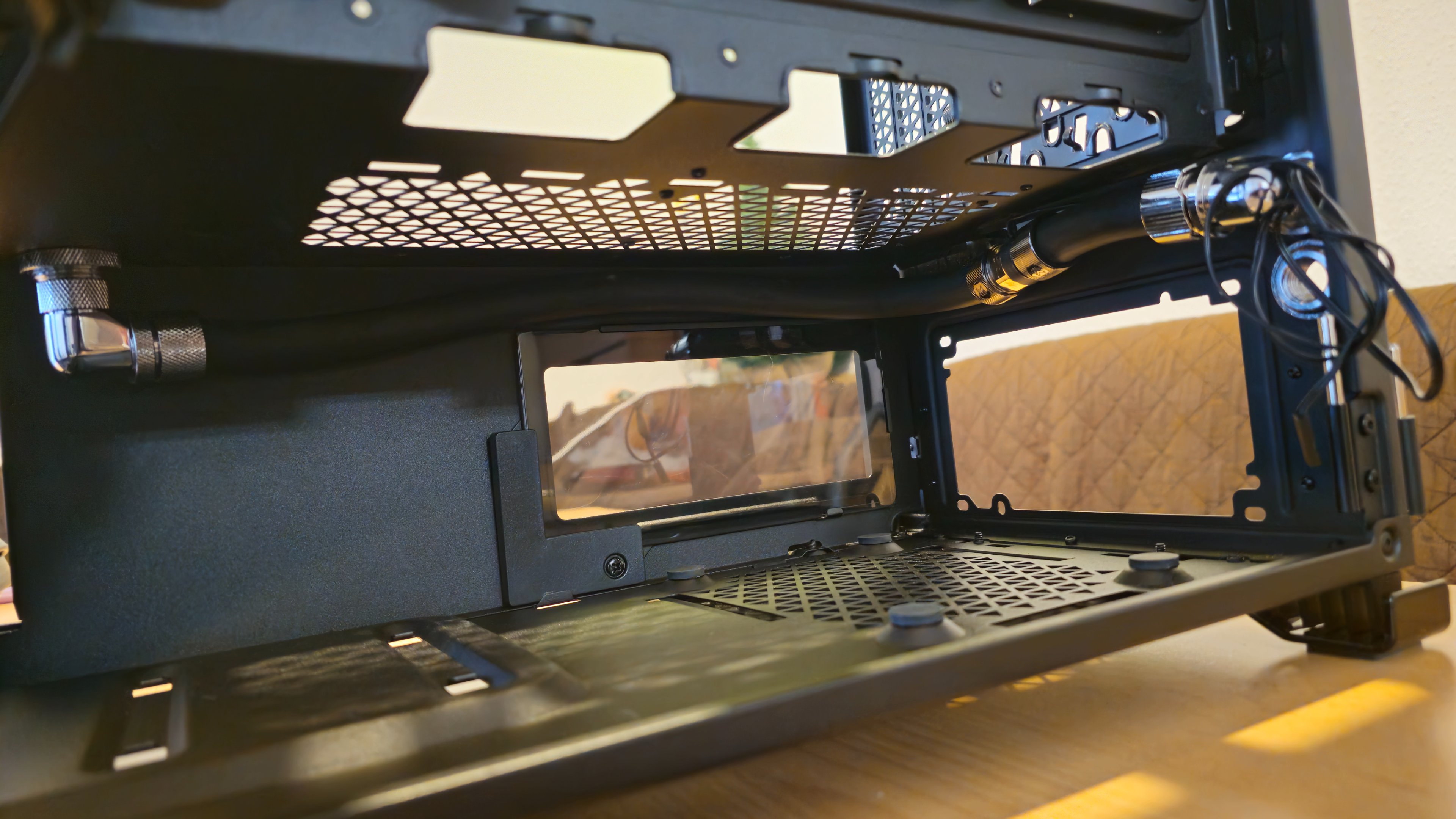 Vielleicht ist auch unten am Netzteil genug Platz um zum Mora zu gelangen und dann kann ich das noch etwas anders umplanen. Wäre mir dort lieber, als oben durch das Mesh gehen zu müssen. Eine Slotblende möchte ich dazu nicht verwenden.