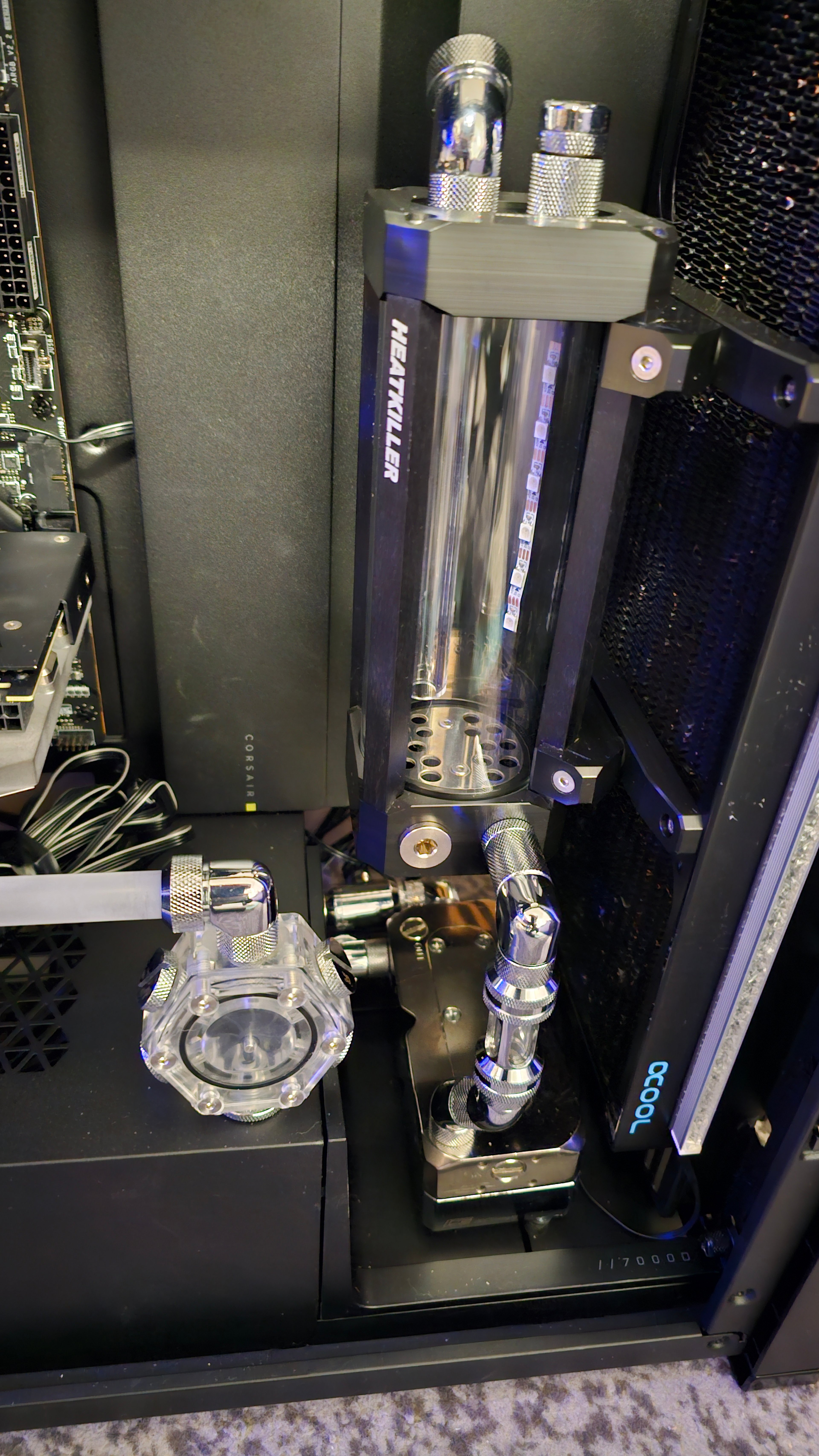 Meine Kühlflüssigkeit müsste ich auch austauschen. Denn ich habe mal von DP-Ultra gelb auf farblos gewechselt und meinen Kreislauf zum Reinigen nicht zerlegt. Obwohl ich 3x mit destilliertes Wasser + 3x mit DP-Ultra gespült habe, müssen immer noch Rückstände vorhanden sein oder es ist zu einer geringen Flockenbildung gekommen. Denn zwar ist im befülltem Zustand nichts ersichtlich, aber letztens als ich den Filter gereinigt habe, war das Kühlwasser etwas trüb und es sah so aus, als würden da winzige Partikel herumschweben.