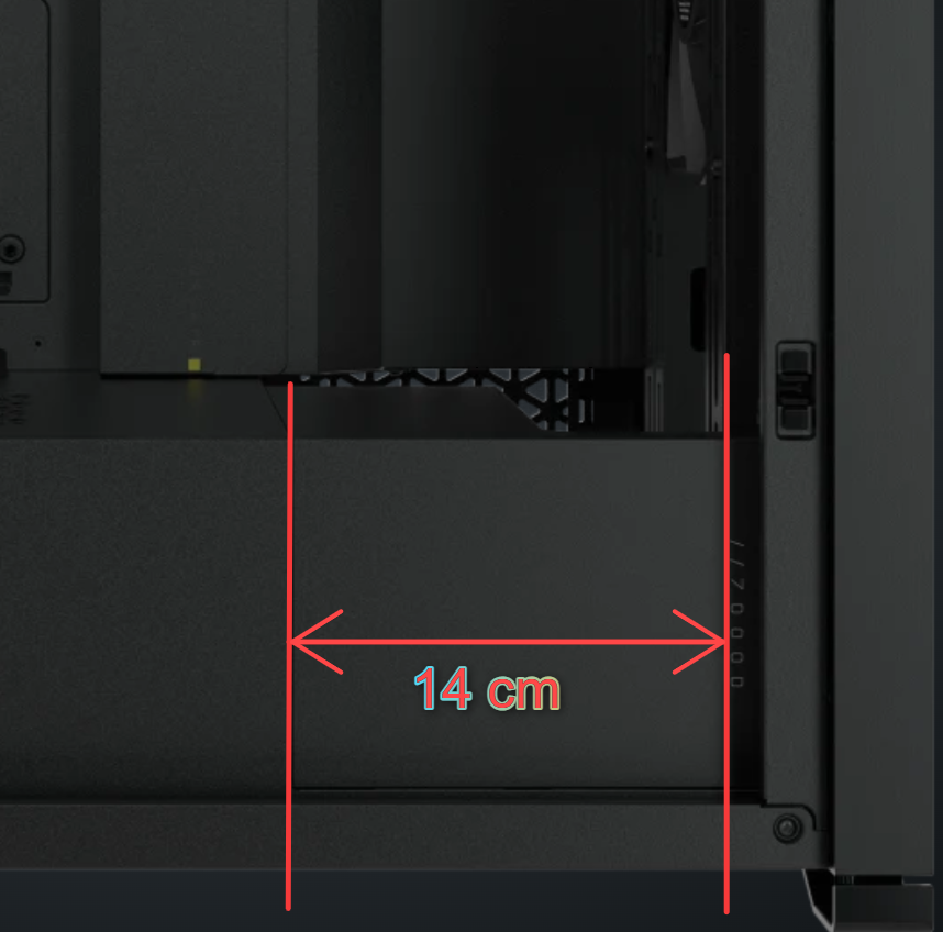 Aber ich bin mir auch nicht sicher, ob die Pumpe hier inkl. 30 mm Radiator in Längsrichtung zum hinterem Seitenteil hin, dazwischen passt. Sollte es nicht passen könnte ich die Pumpe noch auf der Netzteilabdeckung setzen oder unterhalb, aber dann ohne diese Einbuchtung. Denn diese Einbuchtung lässt sich wahlweise optional einsetzen.